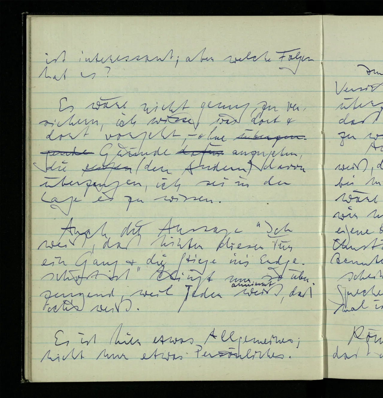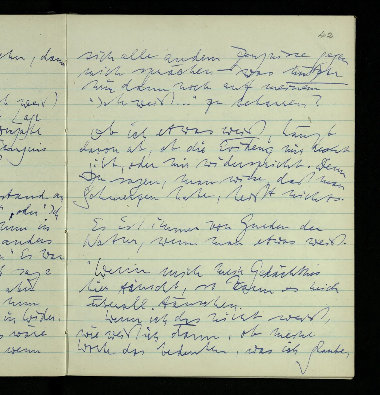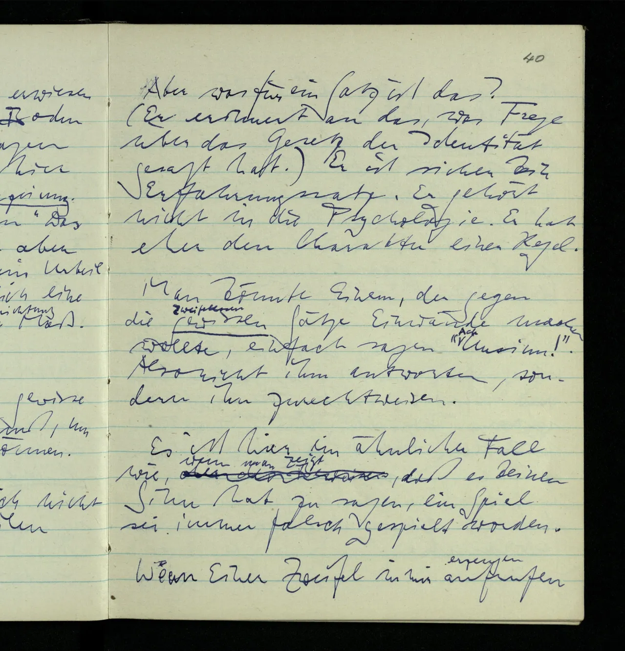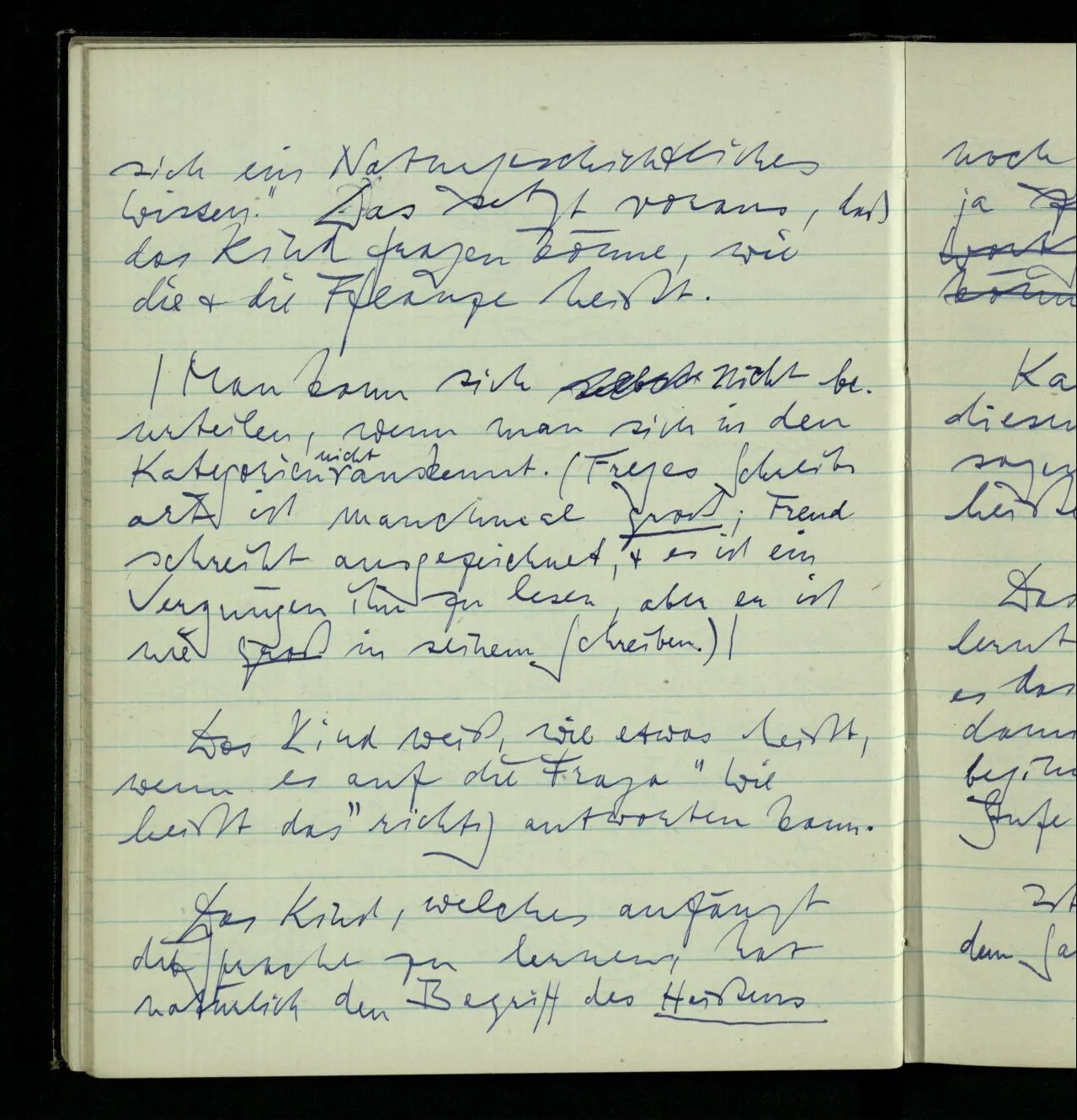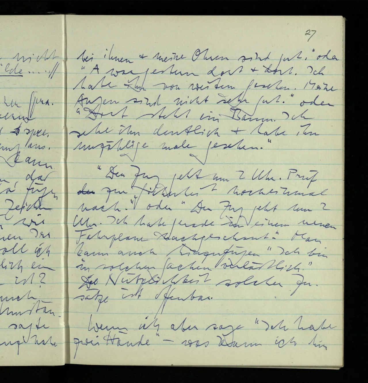 Man könnte z.B. die Sicherheit des Satzes, daß Wasser ca. bei 100˚ C kocht, beschreiben. Es ist das z.B. nicht ein Satz, den ich einmal gehört habe wie etwa den & jenen, die ich nennen könnte. Ich habe das Experiment selber in der Schule gemacht. Der Satz ist ein sehr elementarer unserer Lehrbücher, denen in solchen Dingen zu trauen ist, weil …. – Man kann nun allem dem Beispiele entgegenhalten, die zeigen, daß Menschen dies & jenes für gewiß gehalten haben, was sich später, unsrer Meinung nach, für falsch erwiesen hat. Aber dieses Argument ist wertlos. Zu sagen: wir können am Ende nur solche Gründe anführen, die wir für Gründe halten, sagt gar nichts. Kann es denn nicht auch geschehen, daß man heute einen Irrtum früherer Zeiten zu erkennen glaubt, & später darauf kommt, daß die erste Ansicht richtig war. etc. Ich glaube es liegt hier ein Mißverständnis des Wesens unserer Sprachspiele zu Grunde.
