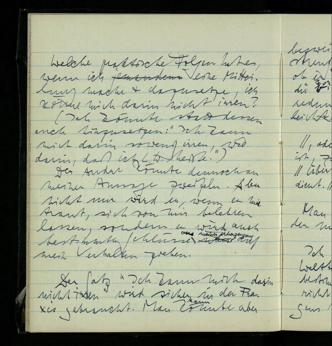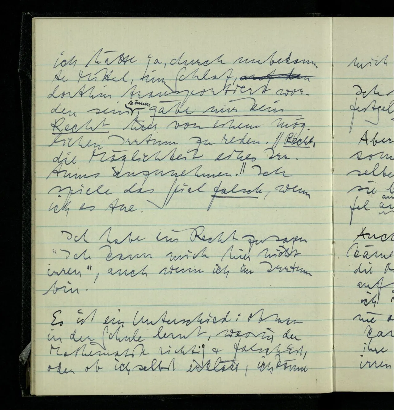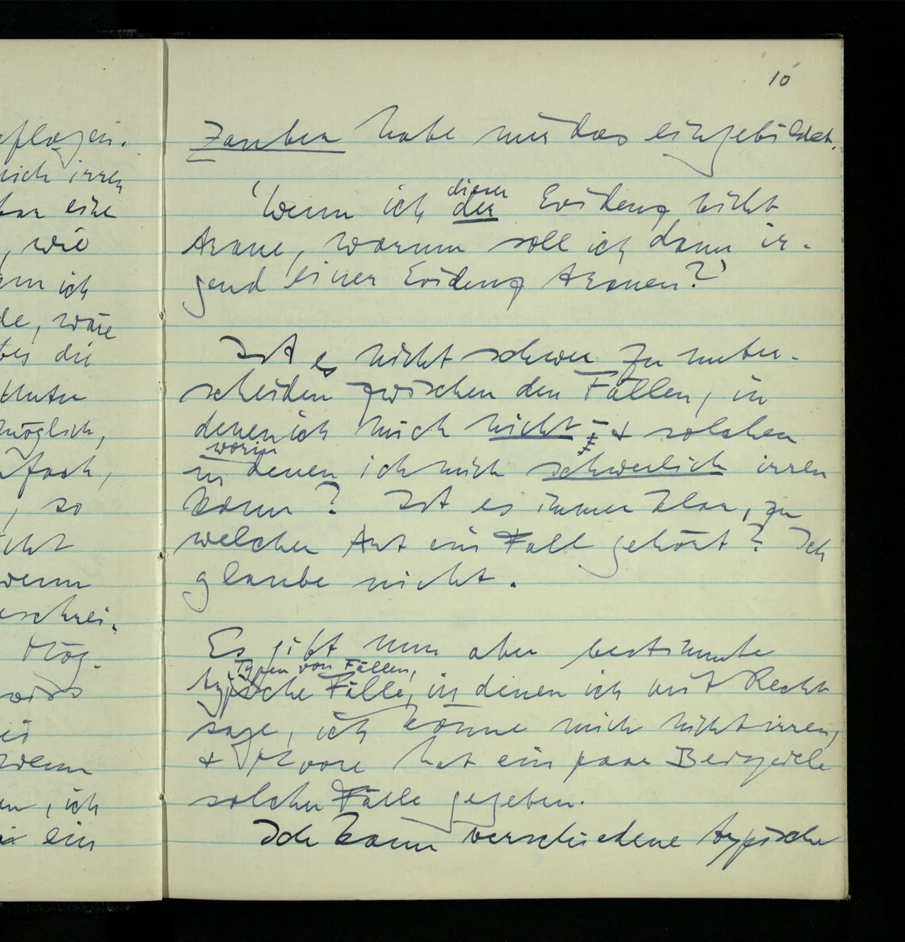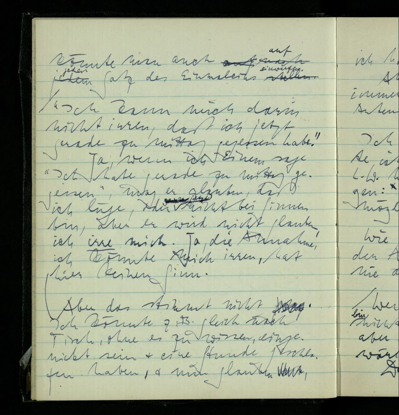 Aber das stimmt nicht. Ich könnte z.B. gleich nach Tisch, ohne es zu wissen, eingenickt sein & eine Stunde geschlafen haben, & nun glauben, ich hätte gerade gegessen. Aber ich unterscheide hier immerhin zwischen verschiedenen Arten des Irrtums.