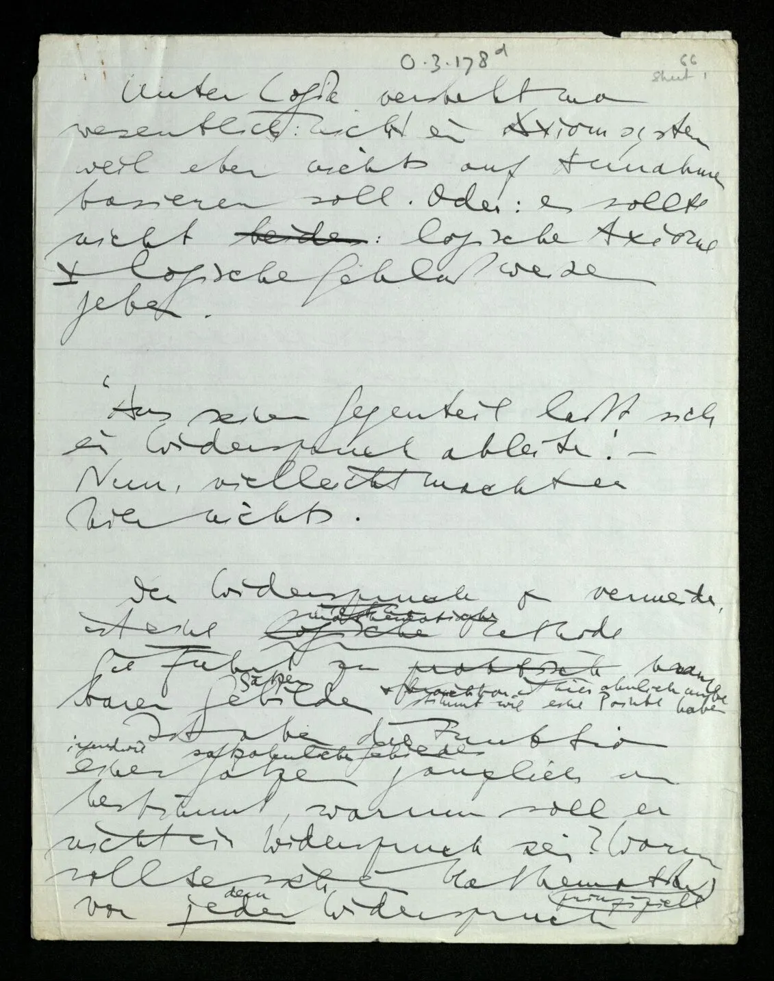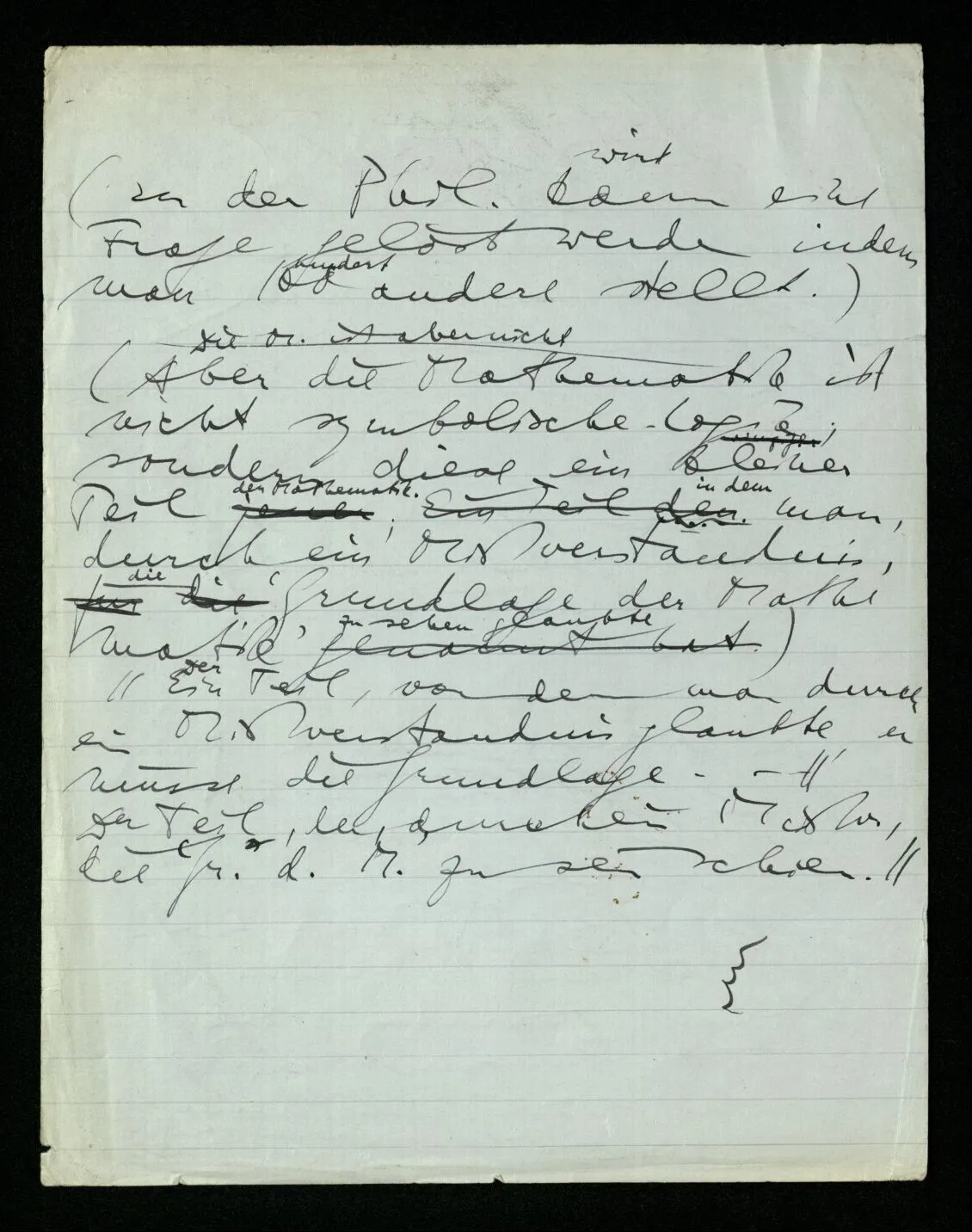 (Aber die Mathematik ist nicht symbolische Logik; sondern diese ein kleiner Teil der Mathematik. Ein Teil in dem man, durch ein Mißverständnis, die ‘Grundlage der Mathematik’ zu sehen glaubte.)