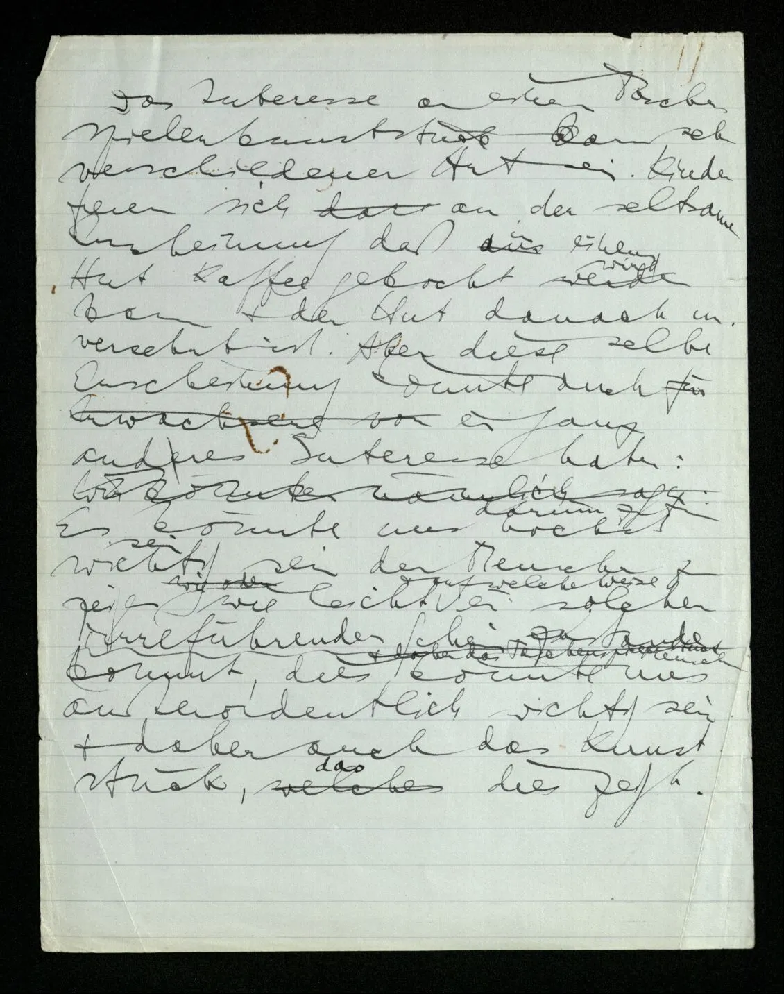 Das Interesse an einem Taschenspielerkunststück kann sehr verschiedener Art sein. Kinder freuen sich an der seltsamen Erscheinung daß in einem Hut Kaffee gekocht werden kann & der Hut danach unversehrt ist. Aber diese selbe Erscheinung könnte auch ein ganz andres Interesse haben: Es könnte uns höchst wichtig sein den Menschen zu zeigen wie leicht & auf welche Weise ein solcher irreführender Schein zustande kommt, dies könnte uns außerordentlich wichtig sein & daher auch das Kunststück, das dies zeigt.