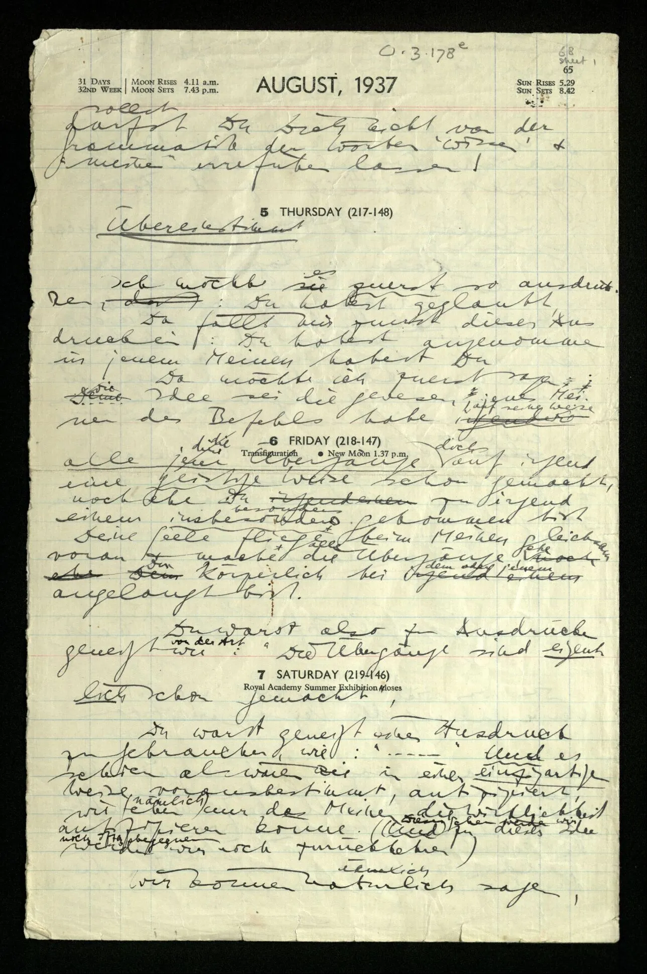 Ich möchte es zuerst so ausdrücken: Du habest geglaubt, … Da fällt mir zuerst dieser Ausdruck ein: Du habest angenommen in jenem Meinen habest Du … Da möchte ich zuerst sagen: Deine Idee sei die gewesen, jenes Meinen des Befehls habe auf seine Weise alle Übergänge auf irgend eine geistige Weise schon gemacht, noch ehe Du zu irgend einem insbesondere gekommen bist. Deine Seele fliege beim Meinen gleichsam voran & mache die Übergänge, ehe Du körperlich bei dem oder jenem angelangt bist.