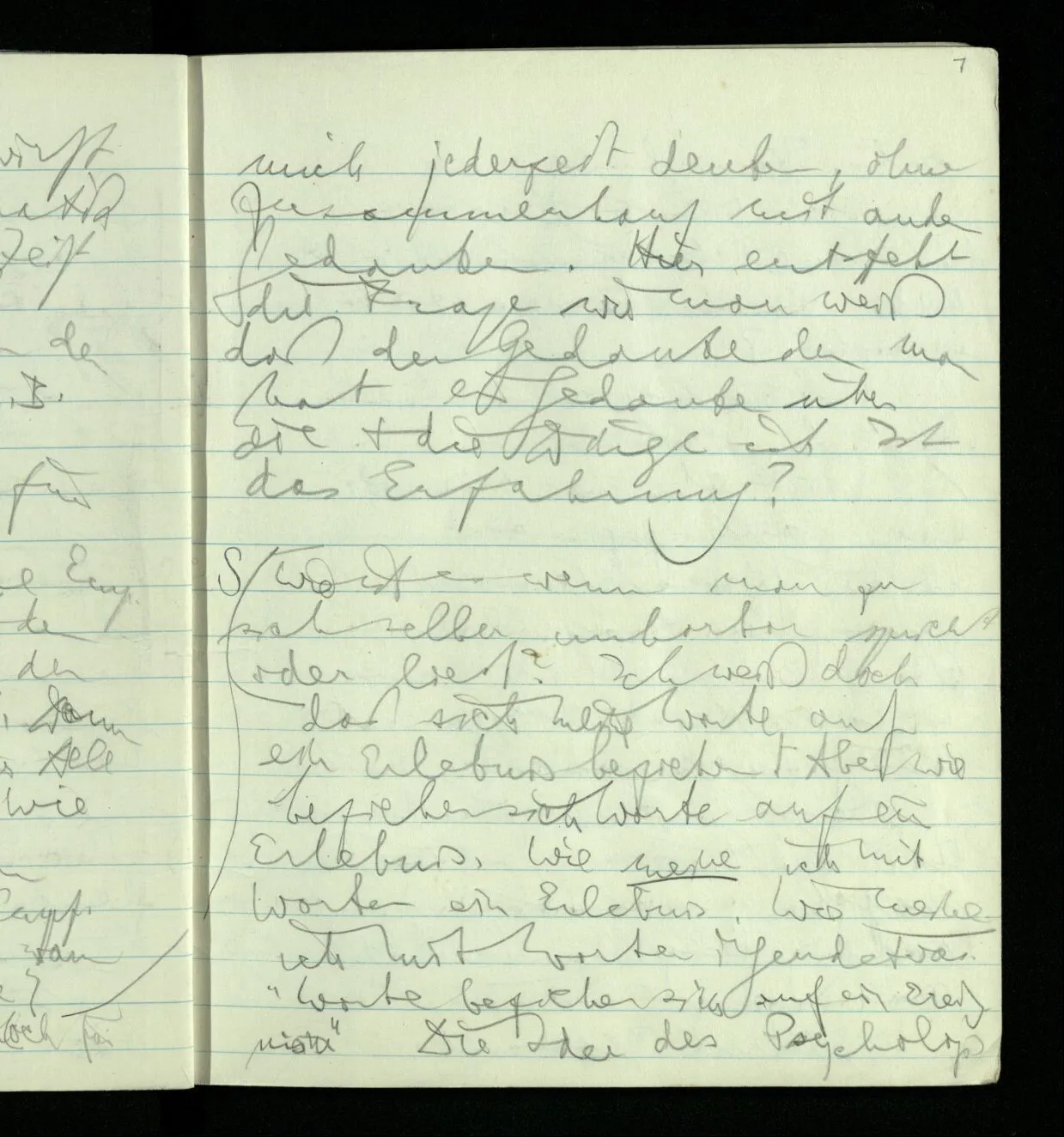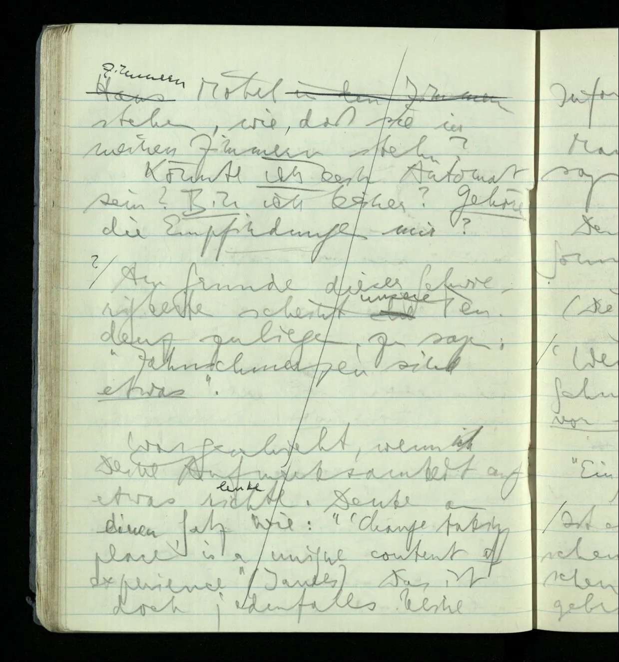 Ich kann aber doch für mich jederzeit denken, ohne Zusammenhang mit andern Gedanken. Hier entsteht die Frage wie man weiß daß der Gedanke den man hat ein Gedanke über die & die Dinge ist. Ist das Erfahrung?