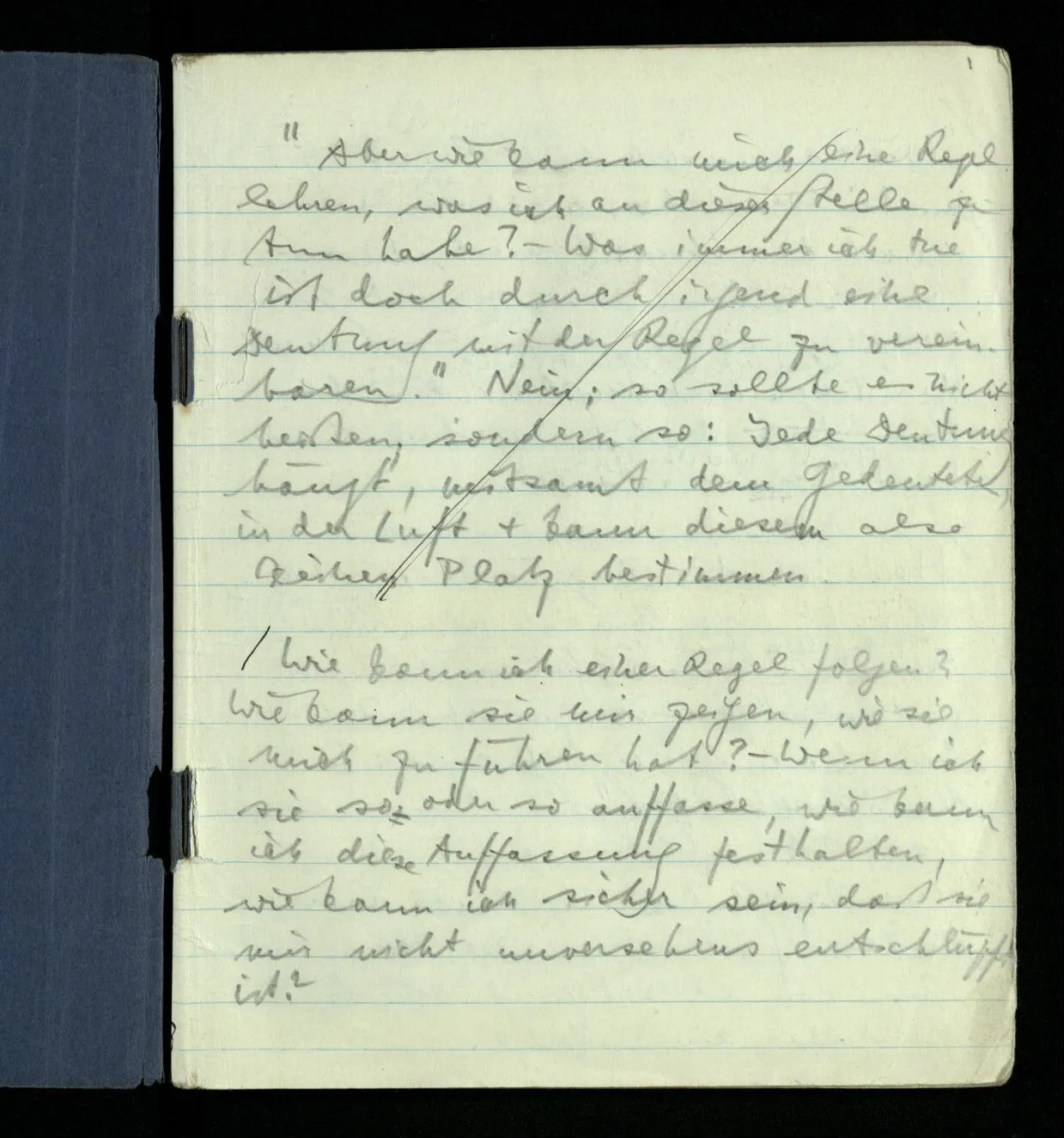 Wie kann ich einer Regel folgen? Wie kann sie mir zeigen, wie sie mich zu führen hat? – Wenn ich sie so oder so auffasse, wie kann ich diese Auffassung festhalten, wie kann ich sicher sein, daß sie mir nicht unversehens entschlüpft ist?
