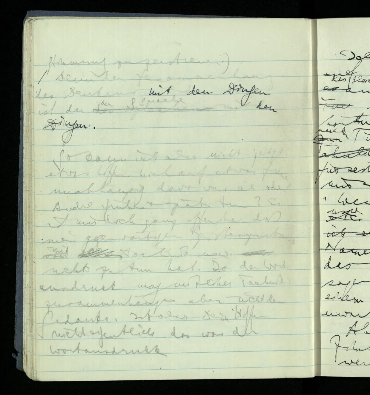 Denn der Zusammenhang des Denkens mit den Dingen ist der der Sprache mit den Dingen.
