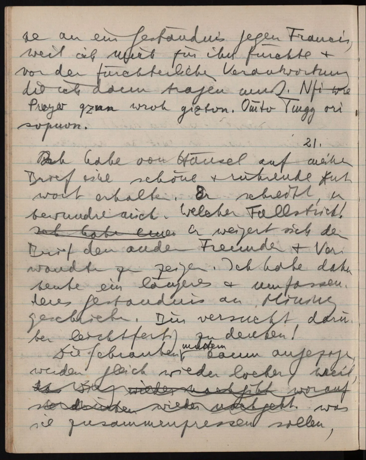 21.03.1937 Bin gemein & niedrig & es geht mir nur zu gut. Und doch bin ich froh daß es mir nicht schlechter geht! Lieben Brief von Max.