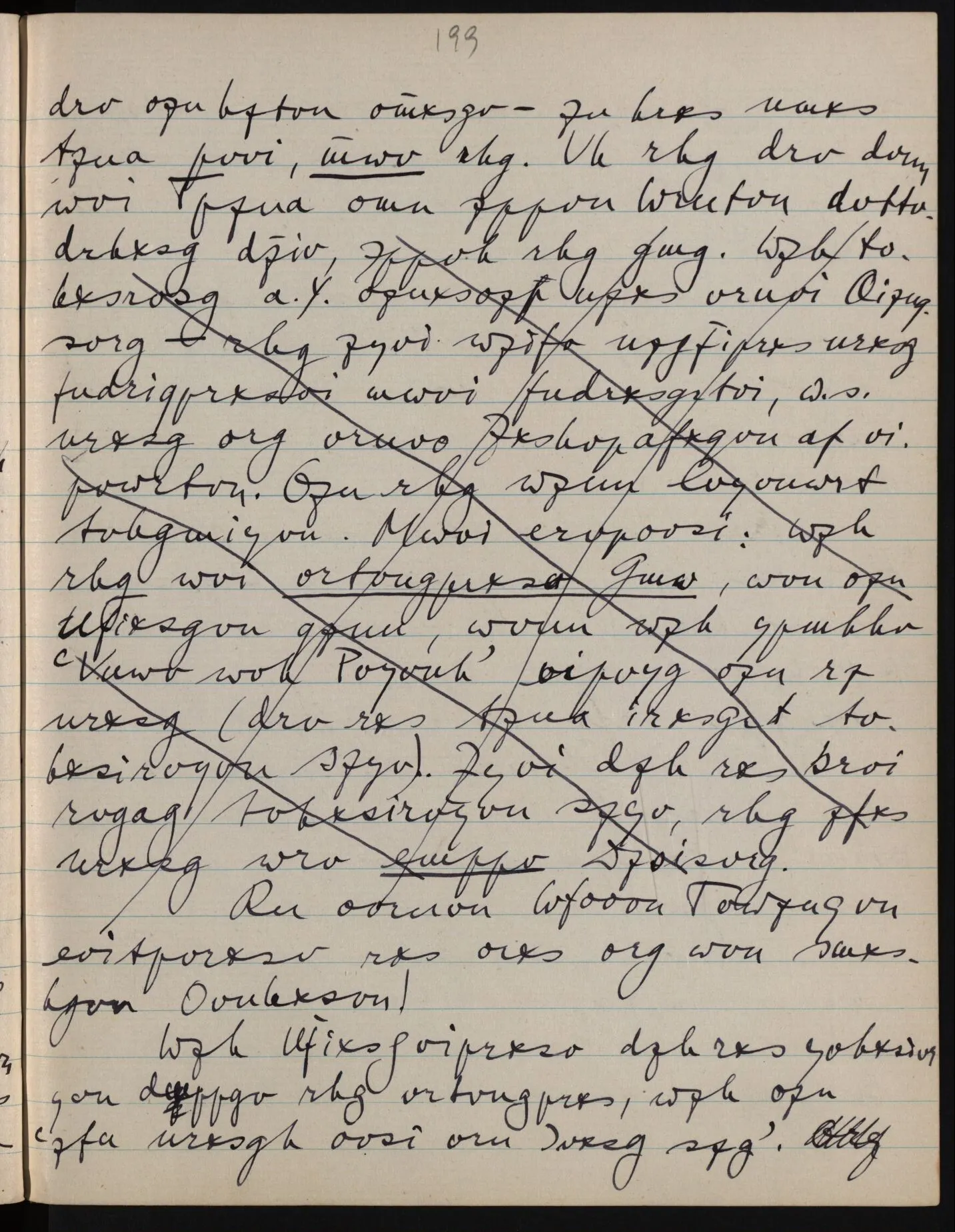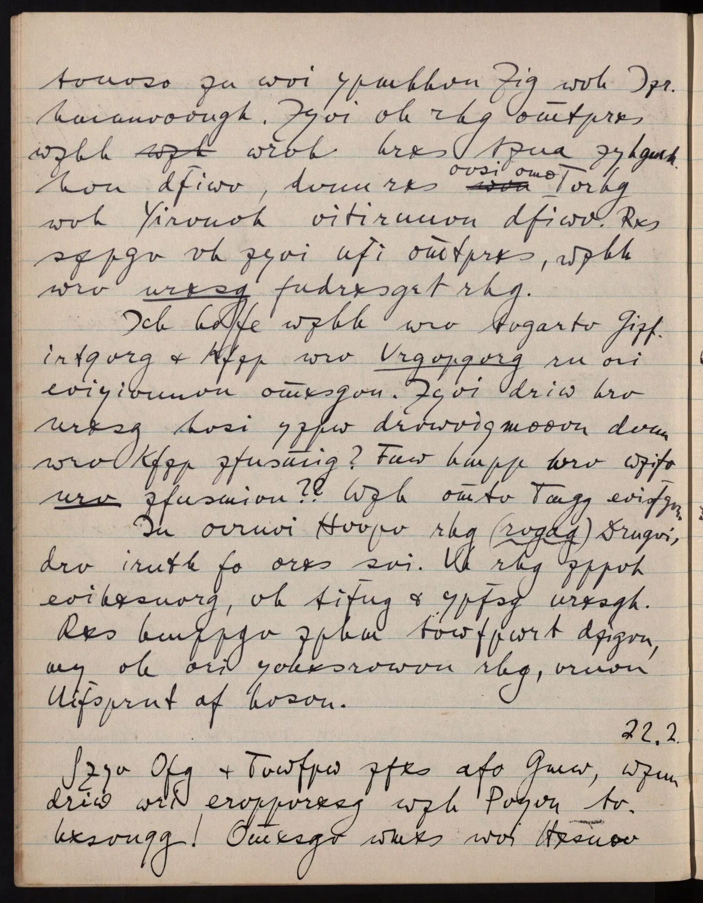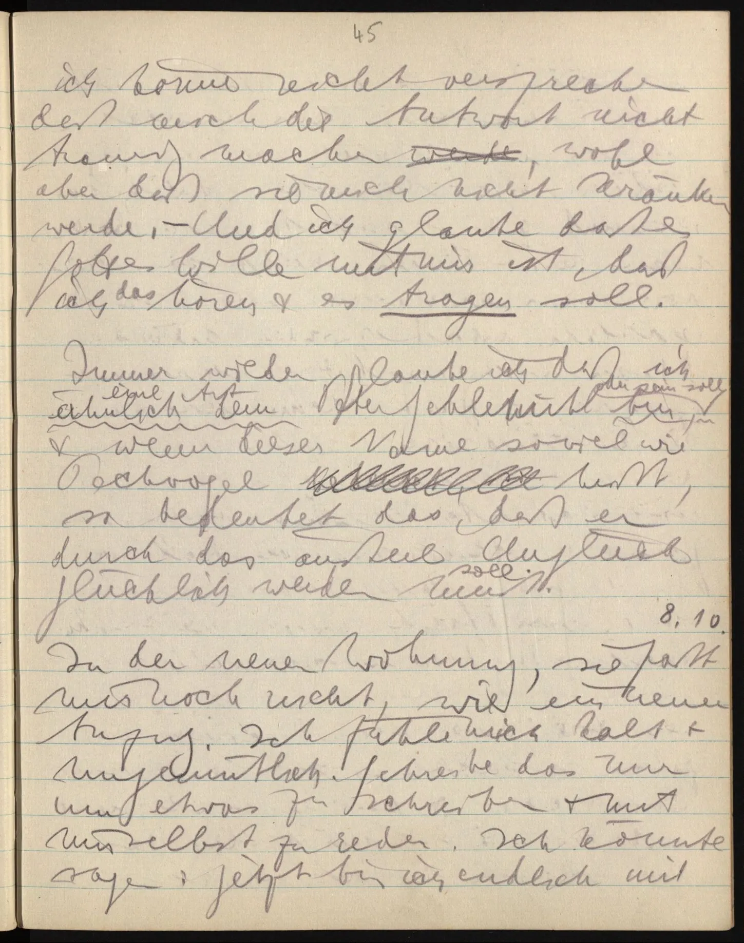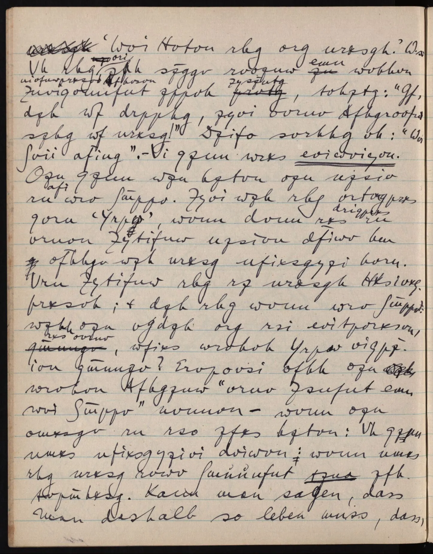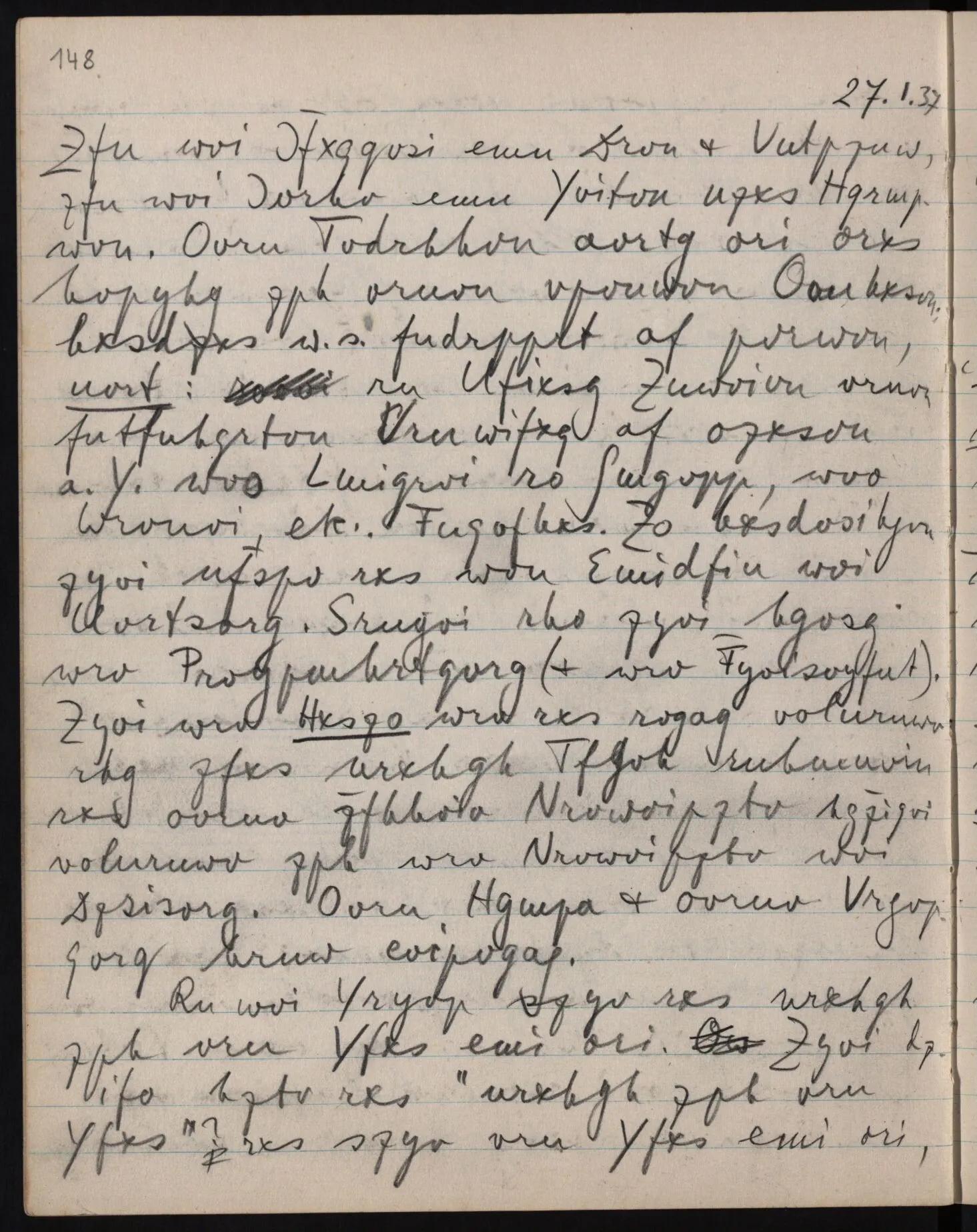 Mein Gehirn macht 02.04.1937 nur recht träge Bewegungen. Leider. Ich bin jetzt leicht durch 04.04.1937 meine Arbeit ermüdbar; oder bin ich träge? – Manchmal denke ich daran ob ich von hier jetzt schon abreisen sollte. Etwa: zuerst nach Wien für einen Monat, dann nach England für einen Monat – oder länger – dann nach Rußland. Und dann wieder hierher zurück? – Oder nach Irland? Das Klügste scheint mir jetzt daß ich in etwa 3 Wochen hier abreise. –