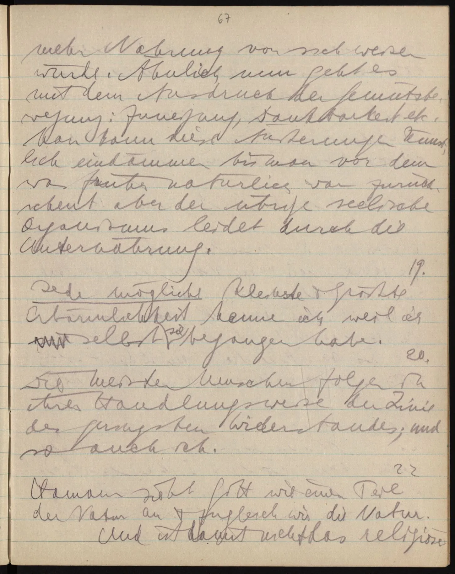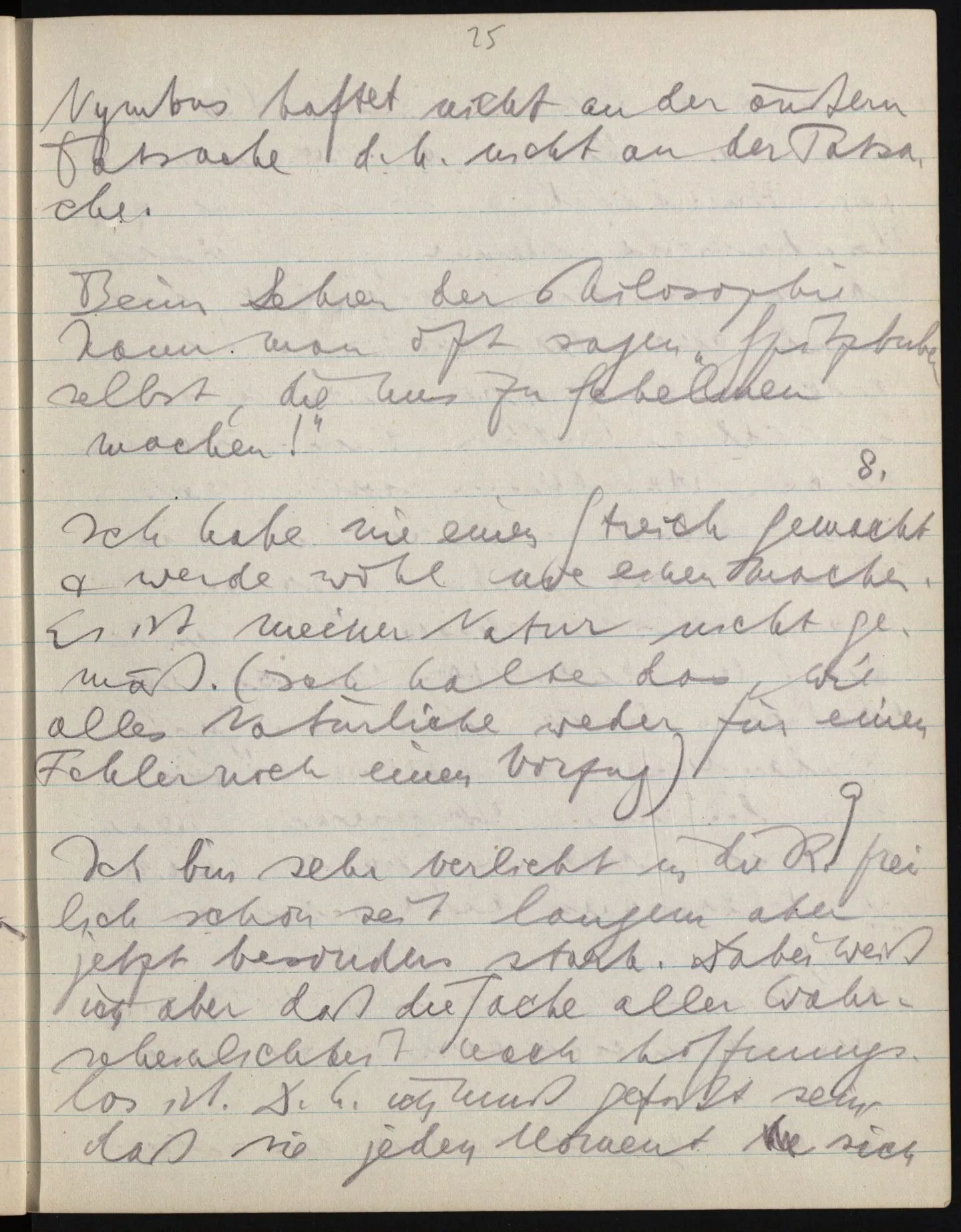 08.05.1930 Ich habe nie einen Streich gemacht & werde wohl nie einen machen. Es ist meiner Natur nicht gemäß. (Ich halte das wie alles Natürliche weder für einen Fehler noch für einen Vorzug.)