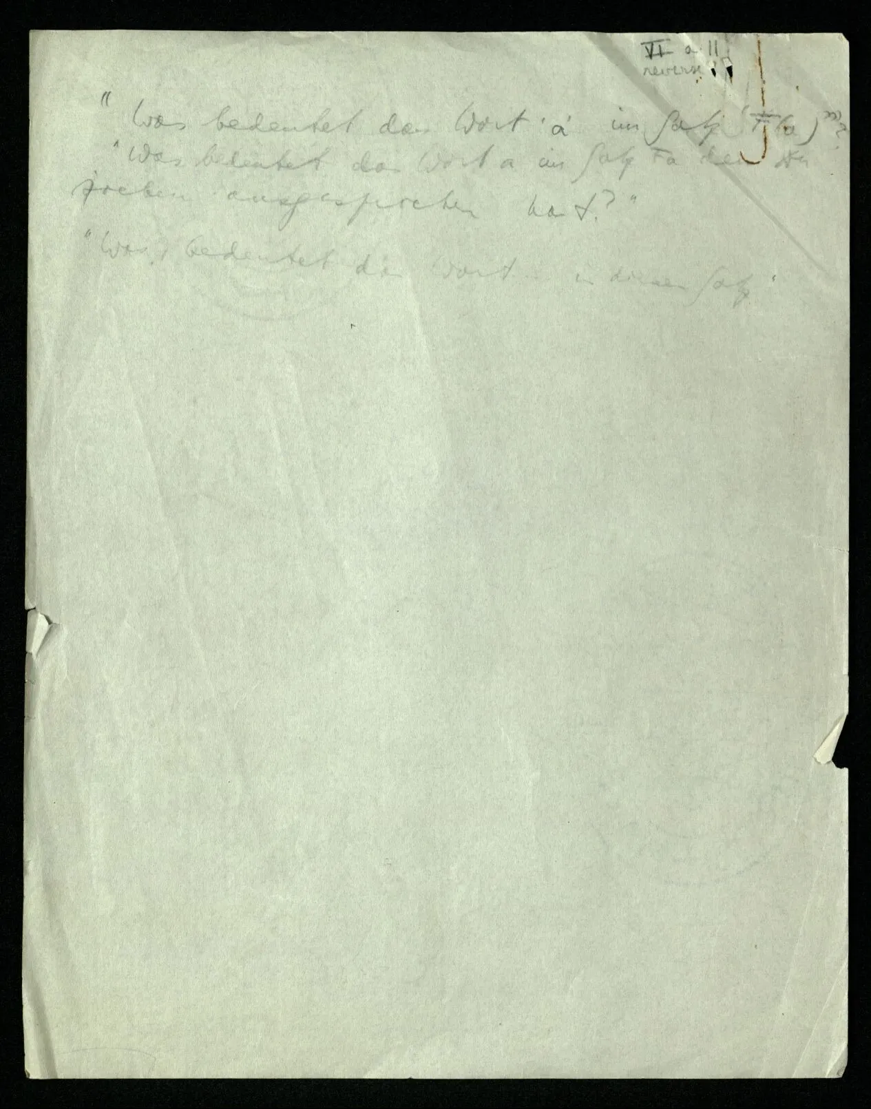 “Was bedeutet das Wort ‘a’ im Satz F(a)’”? “Was bedeutet das Wort a im Satze Fa den Du soeben ausgesprochen hast?“ “Was bedeutet das Wort ‥‥ in diesem Satz?”