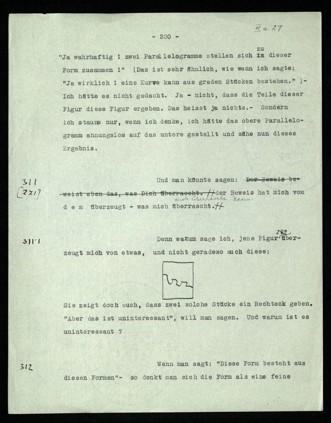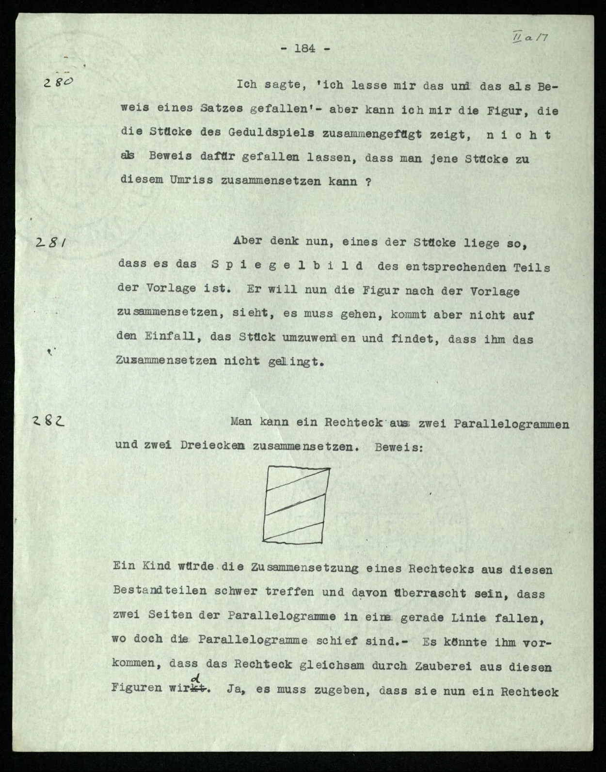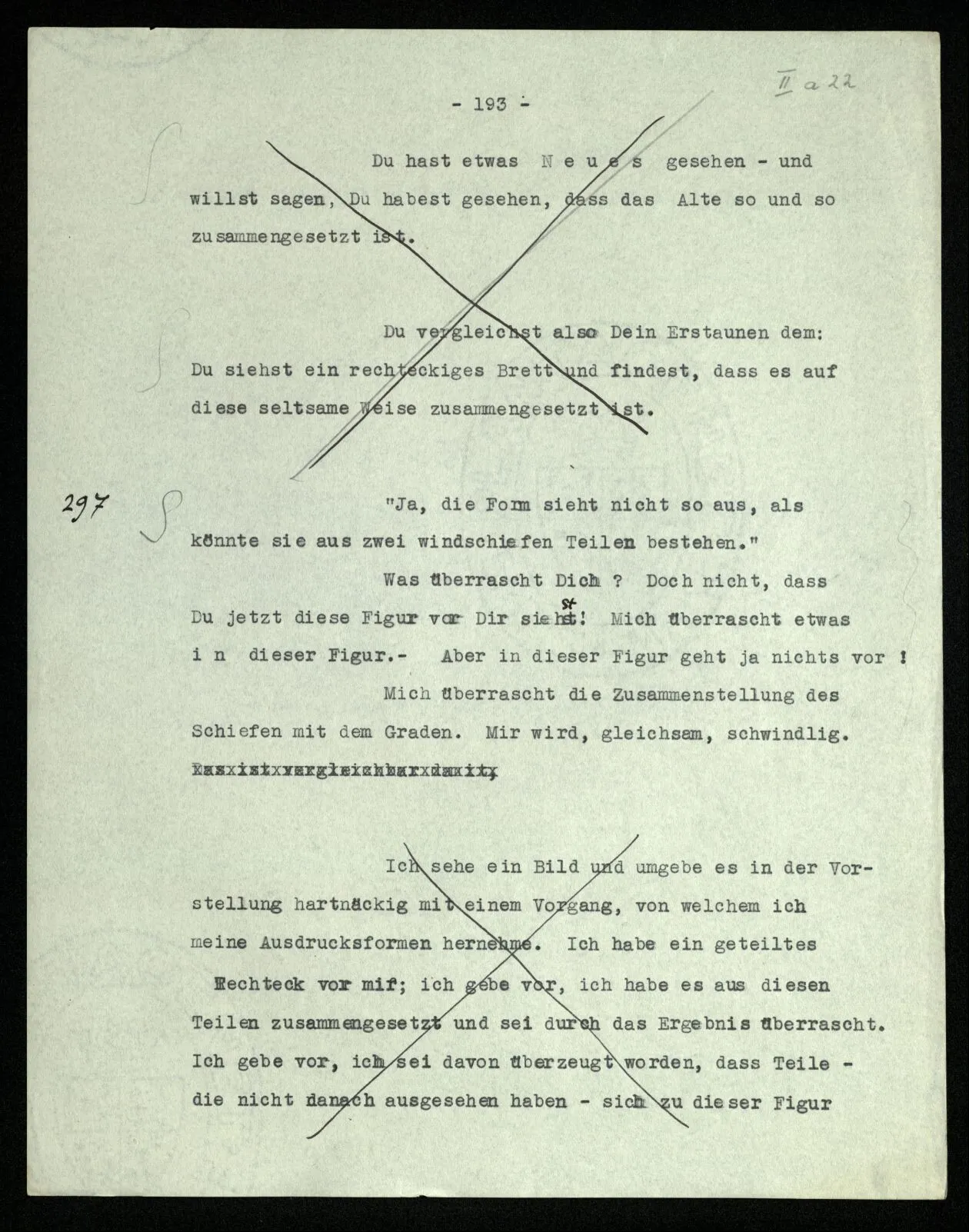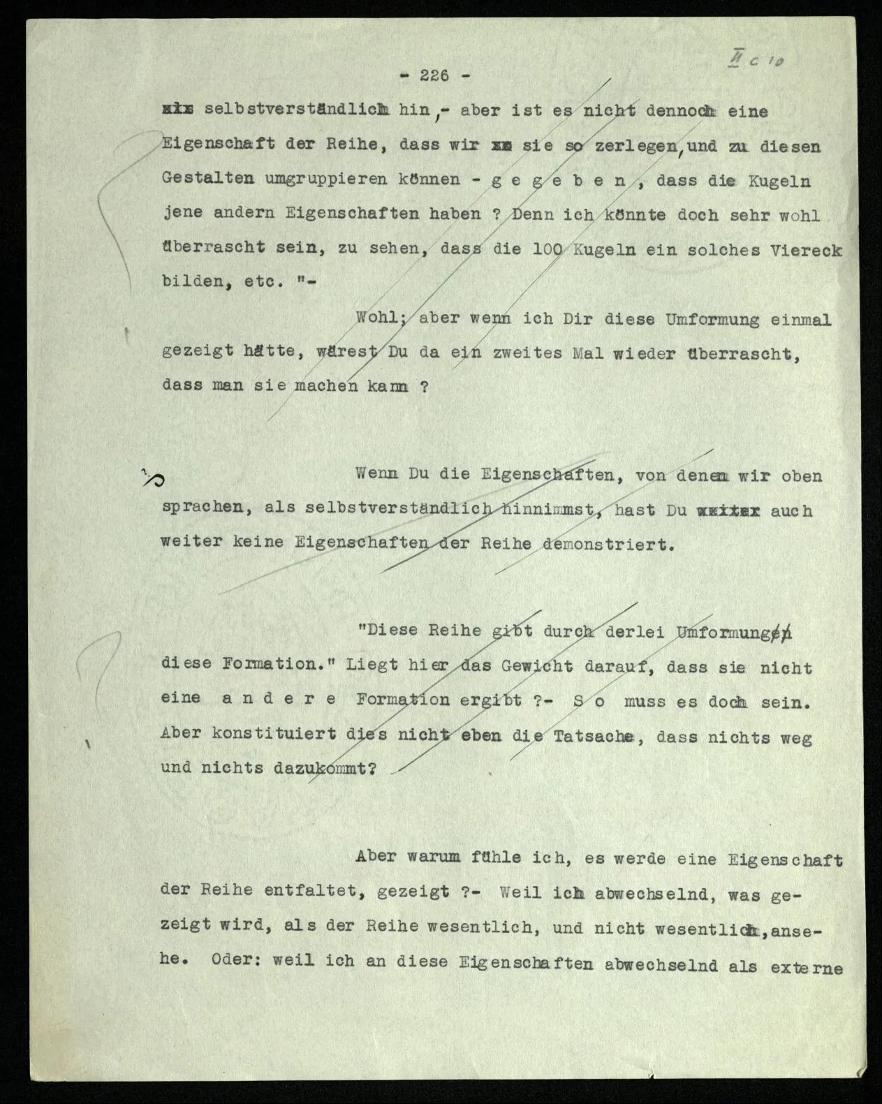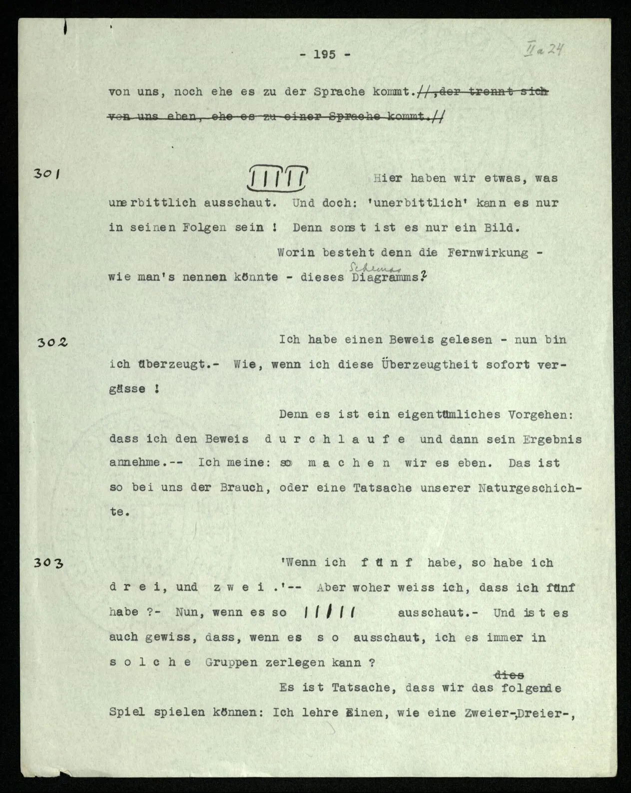 238 Wie ist es aber, wenn ich mich davon überzeuge, daß das Schema dieser Striche | | | | |