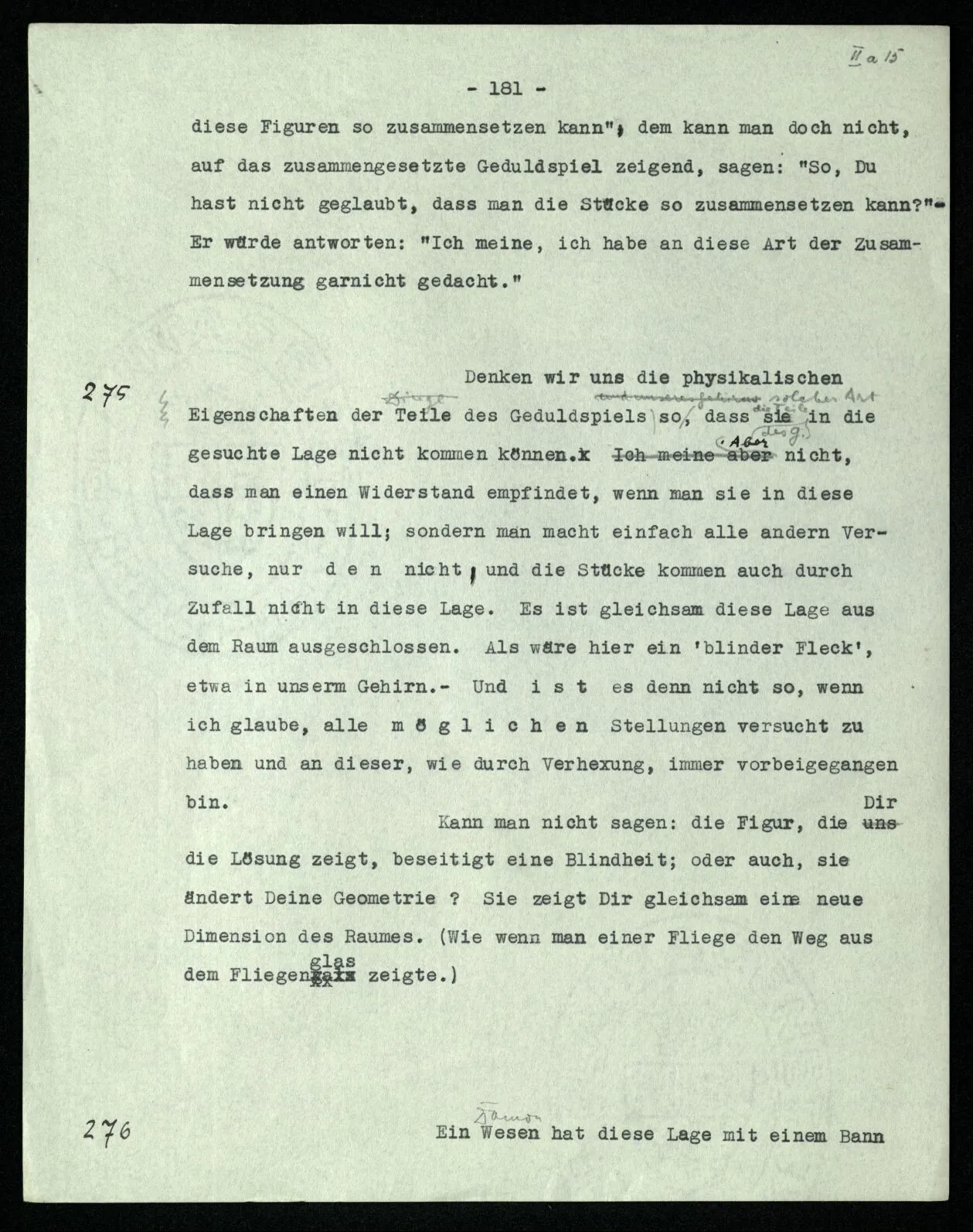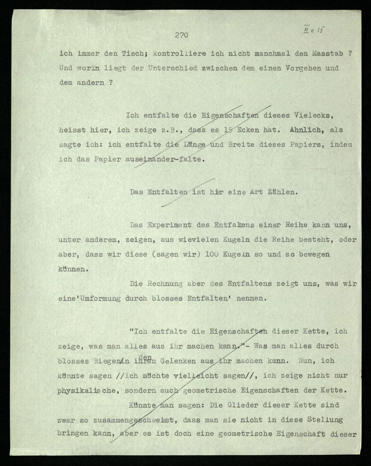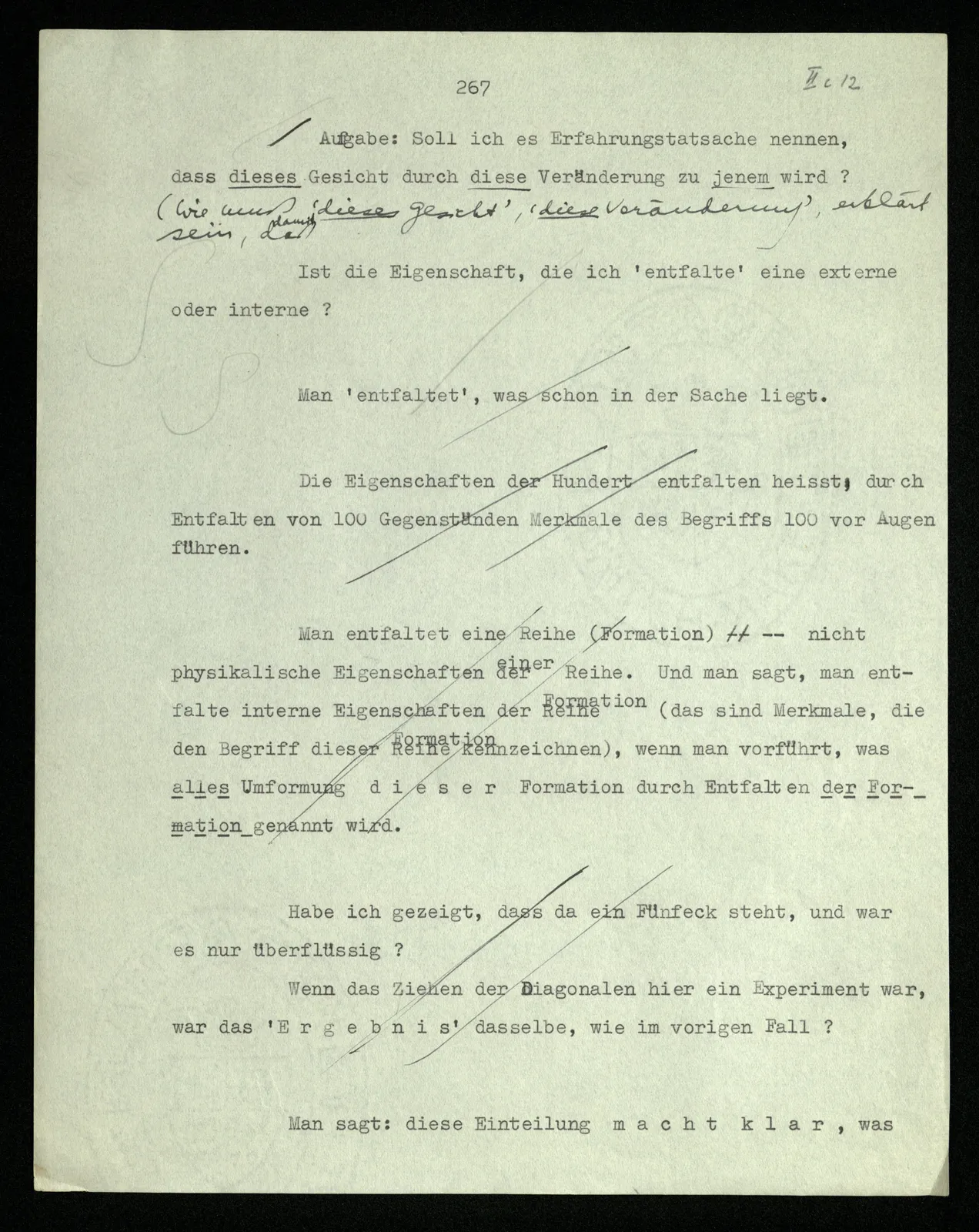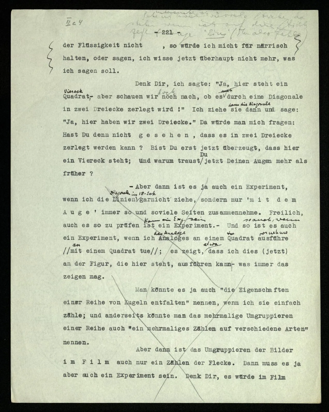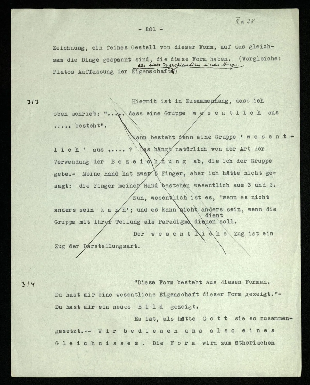 238 Wie ist es aber, wenn ich mich davon überzeuge, daß das Schema dieser Striche | | | | |