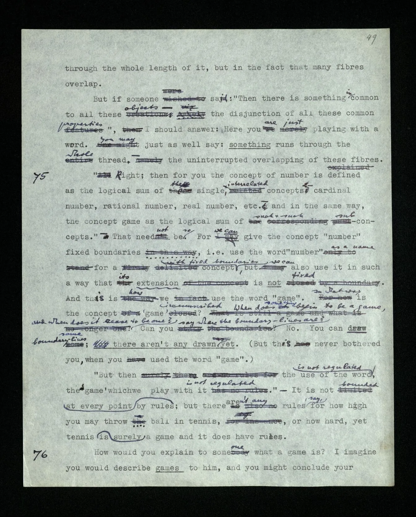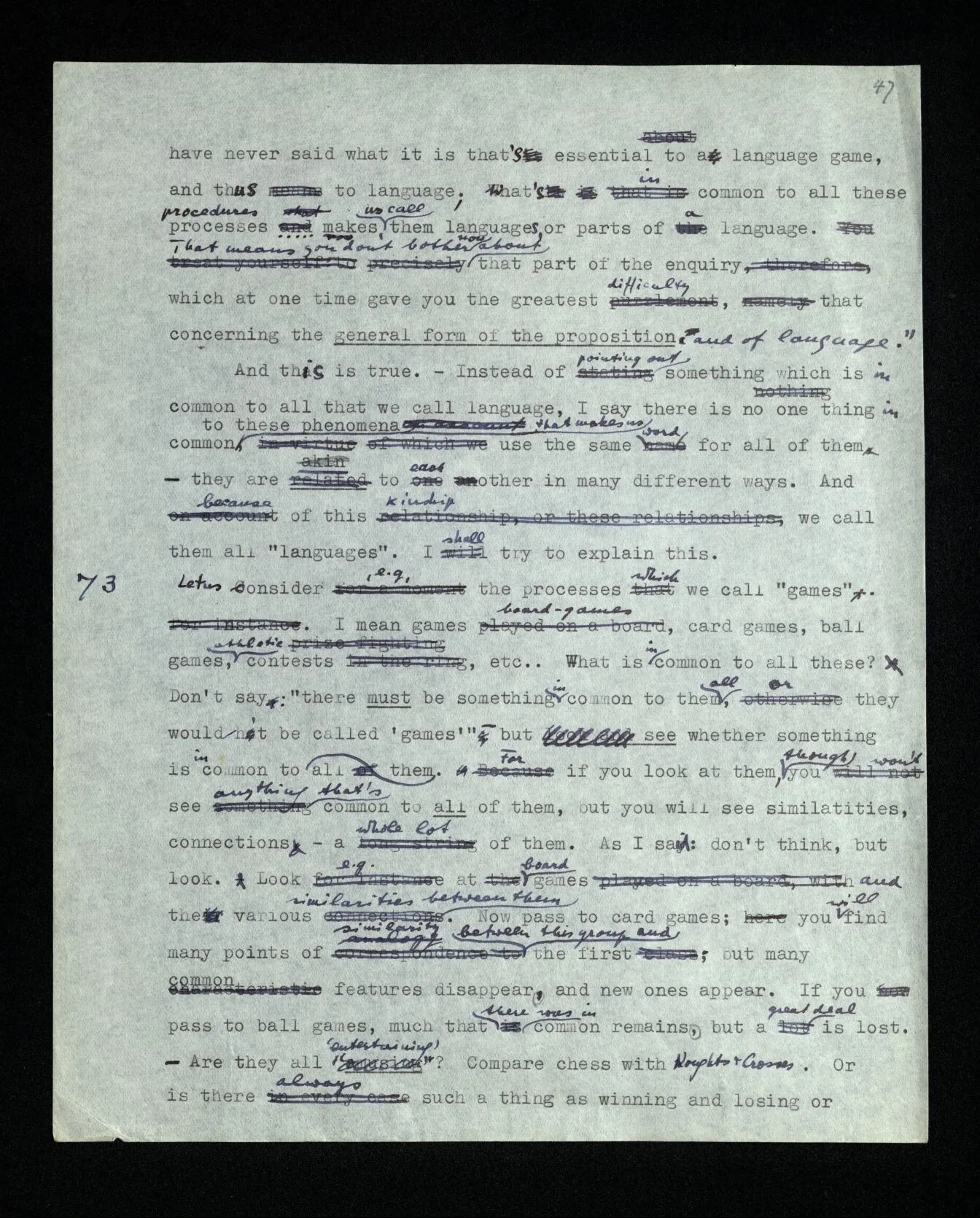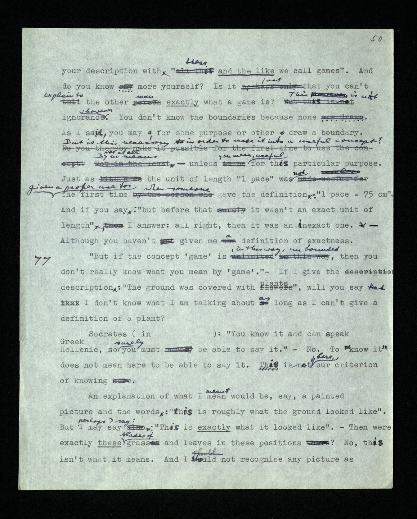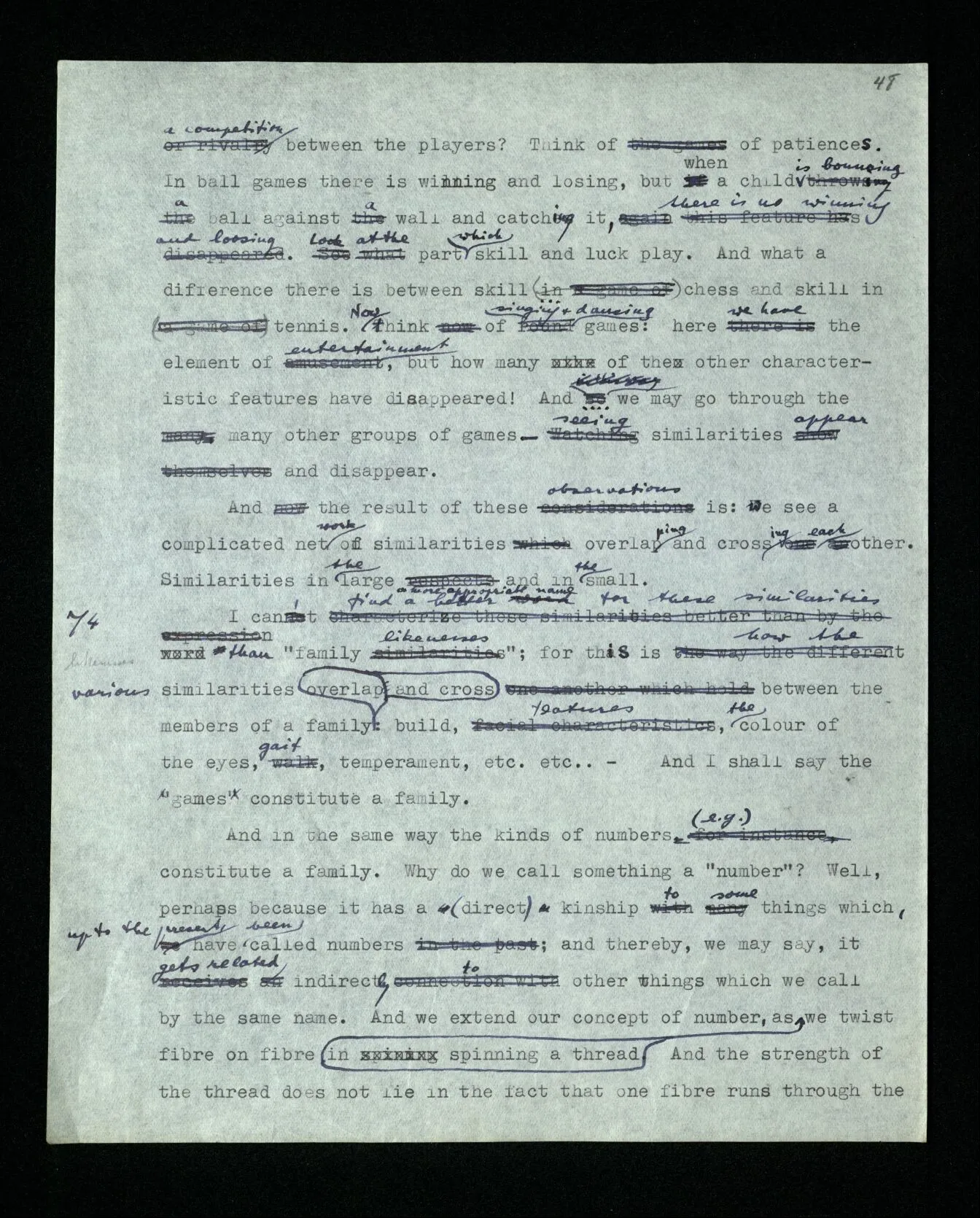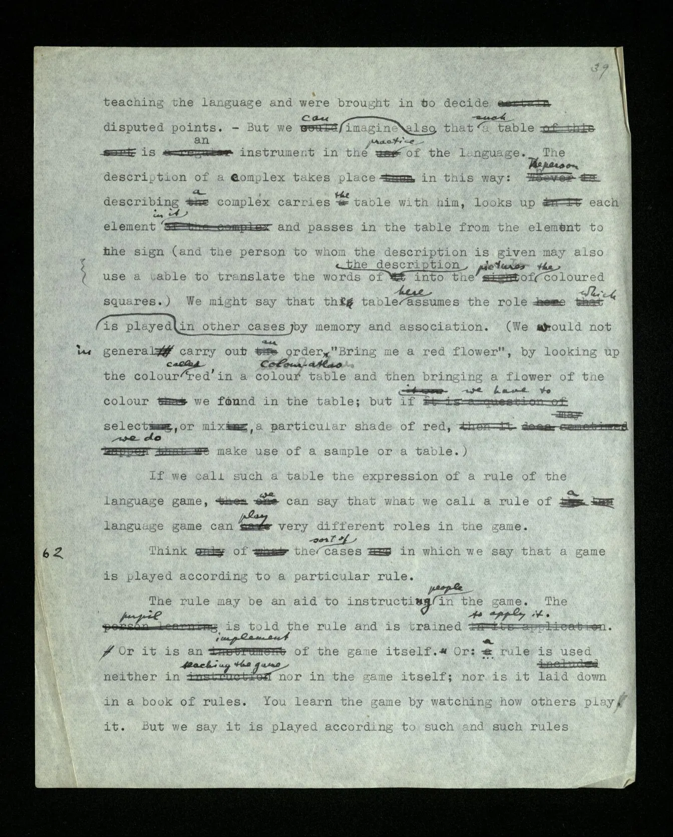 6 It is as though someone explained: “Playing a game consists in moving things about on a surface according to certain rules …”, and we answered him: You seem to be thinking of games played on a board; but these aren’t all the games there are. You can put your description right by confining it explicitly to those games.