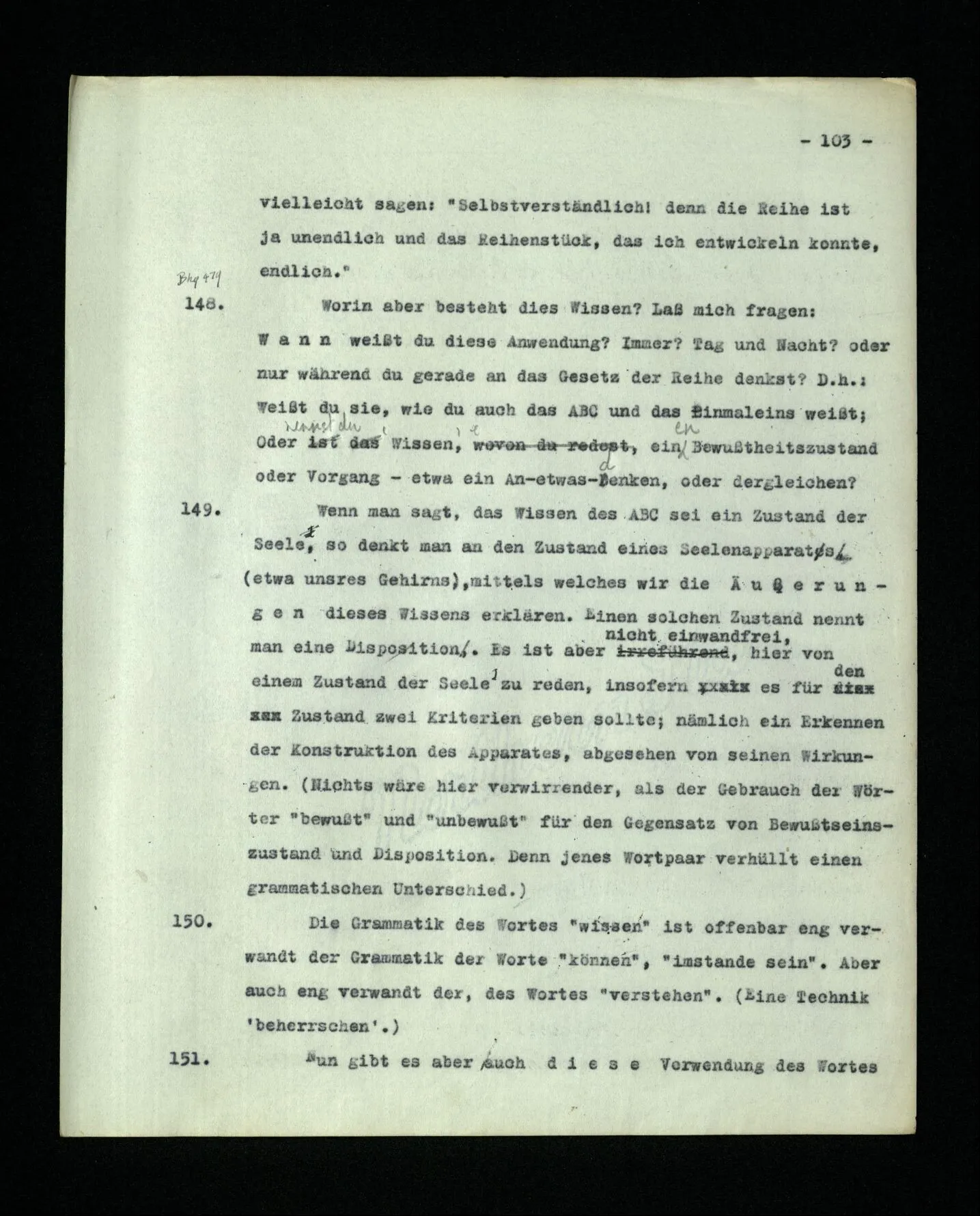 679. “Kannst du aber zweifeln, daß du das meintest?” – Nein; aber sicher sein, es wissen, kann ich auch nicht.