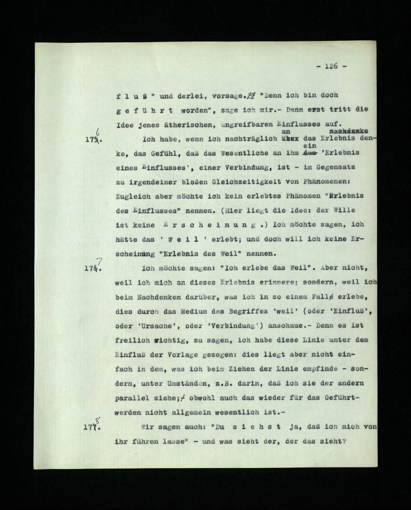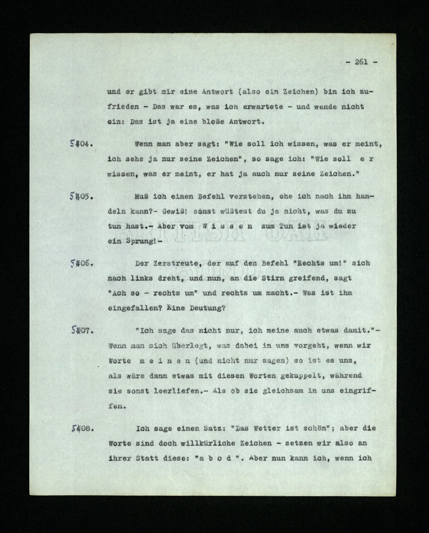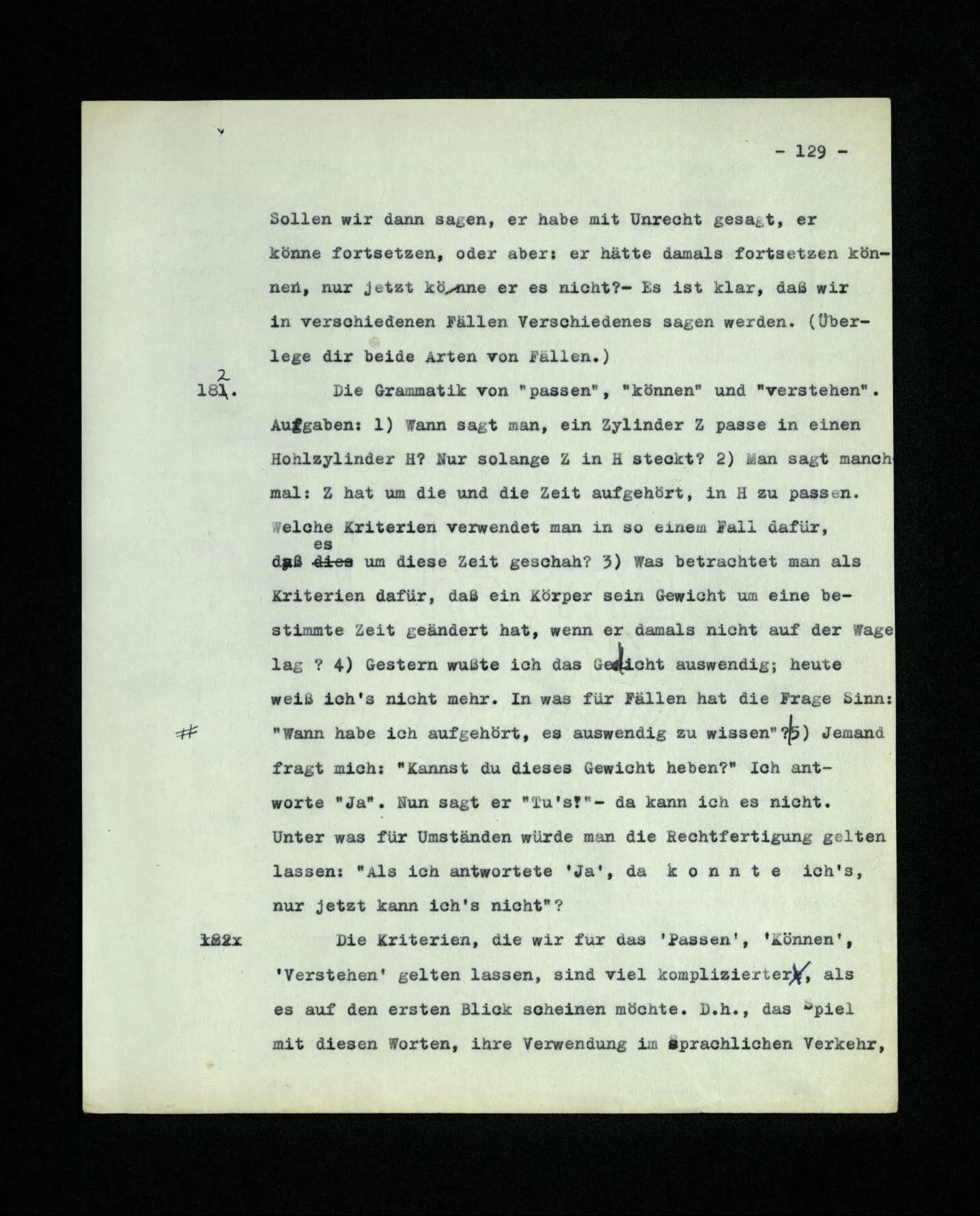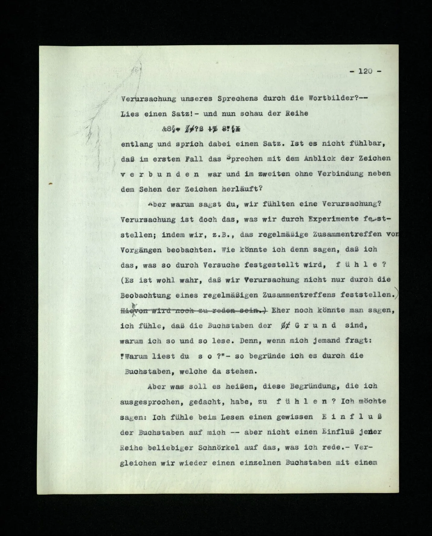 681. Man fragt natürlich auch nicht: “Bist du sicher, daß du ihn verflucht hast, daß die Verbindung mit ihm hergestellt war?” So ist also wohl diese Verbindung sehr leicht herzustellen, daß man ihrer so sicher sein kann?! Wissen kann, daß sie nicht daneben geht. – Nun, kann es mir passieren, daß ich an den Einen schreiben will und tatsächlich an den Andern schreibe? und wie könnte das geschehen?