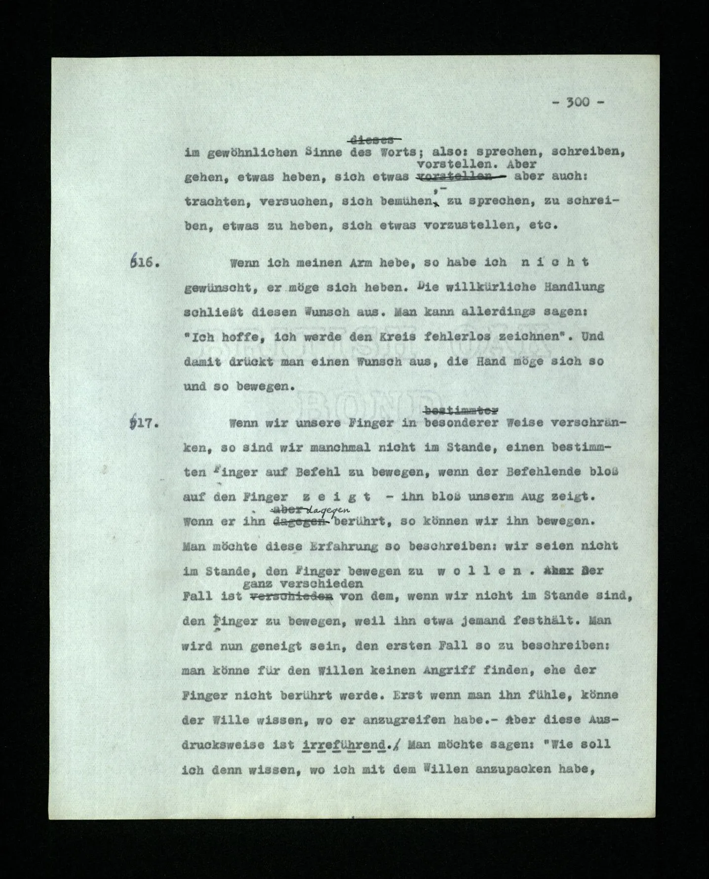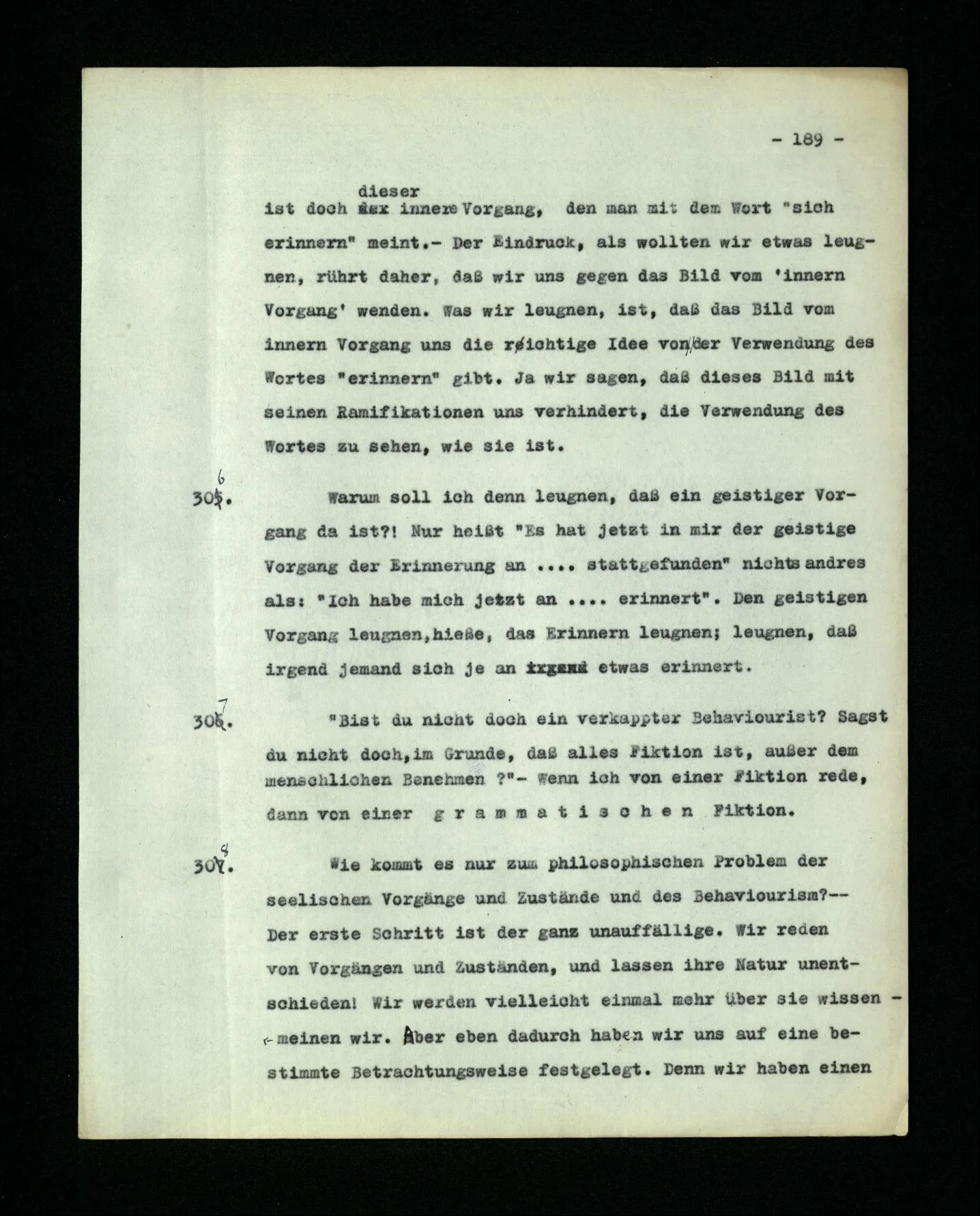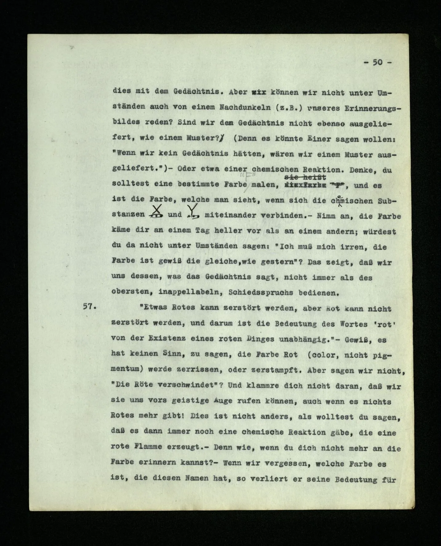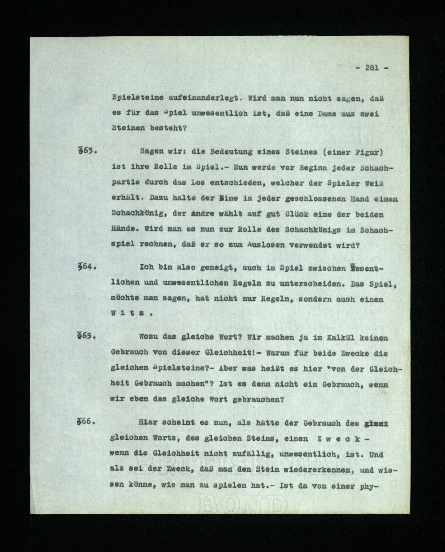 681. Man fragt natürlich auch nicht: “Bist du sicher, daß du ihn verflucht hast, daß die Verbindung mit ihm hergestellt war?” So ist also wohl diese Verbindung sehr leicht herzustellen, daß man ihrer so sicher sein kann?! Wissen kann, daß sie nicht daneben geht. – Nun, kann es mir passieren, daß ich an den Einen schreiben will und tatsächlich an den Andern schreibe? und wie könnte das geschehen?