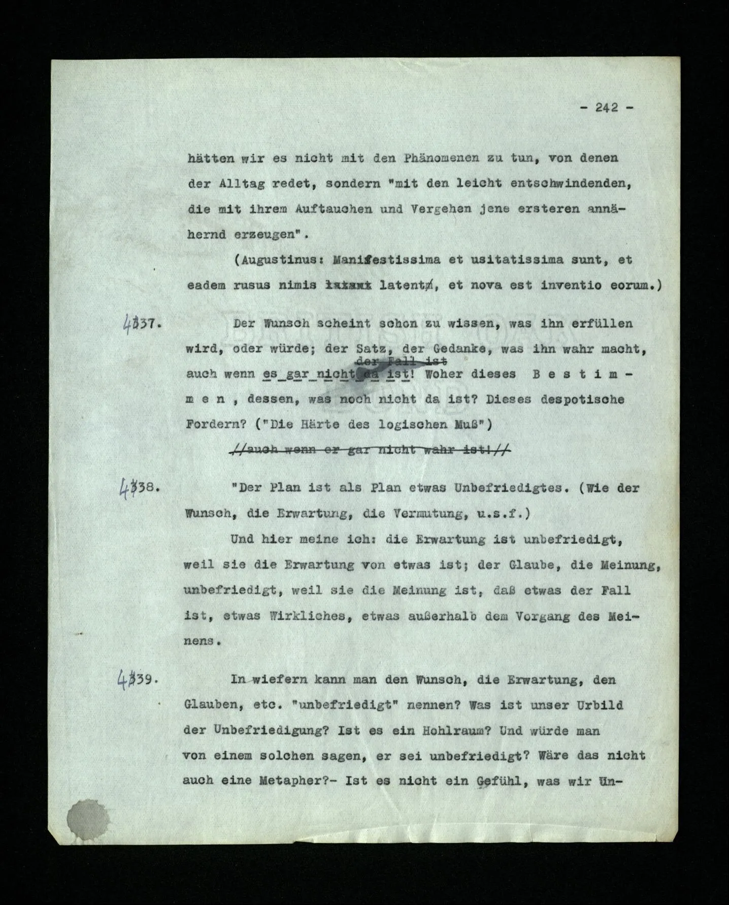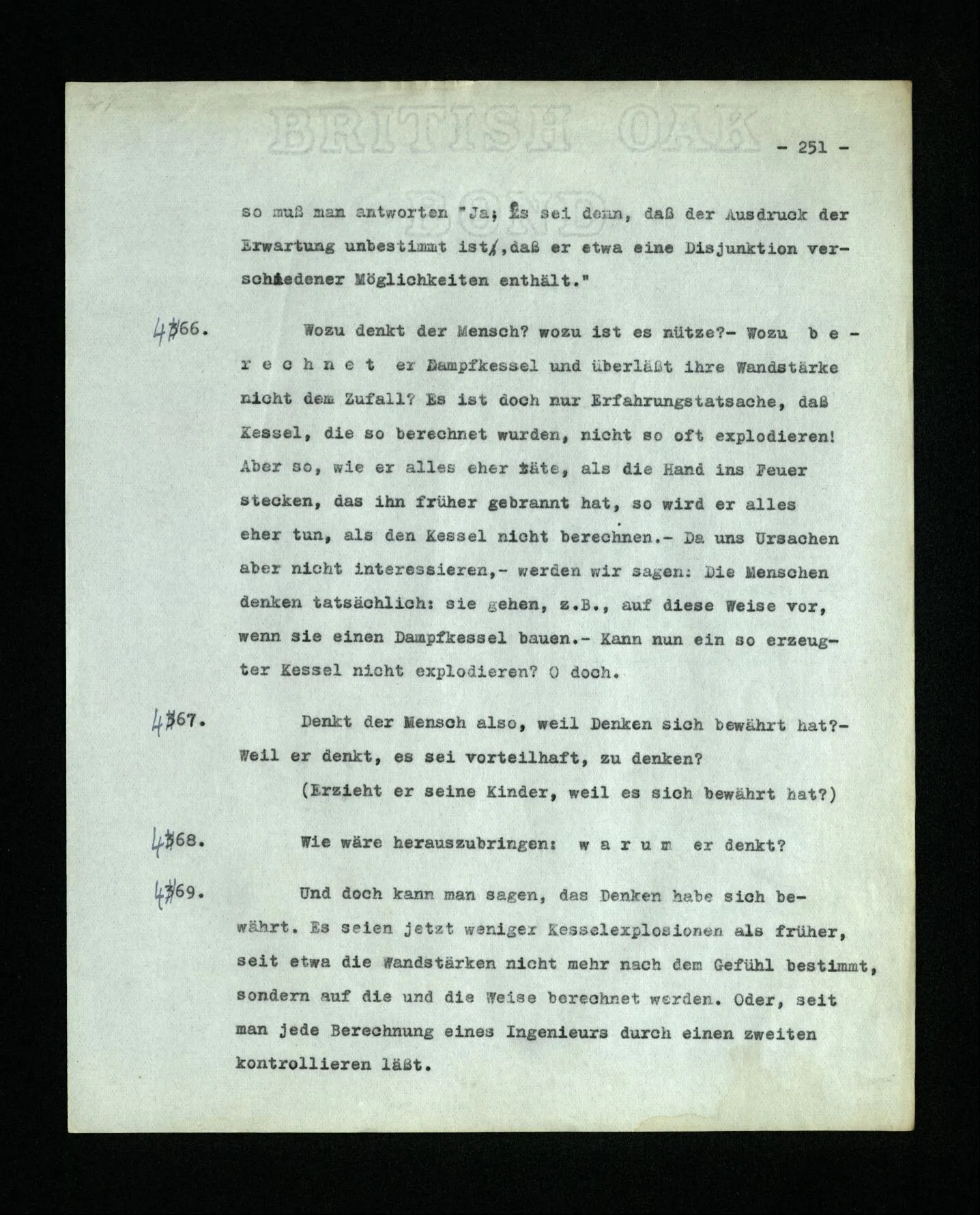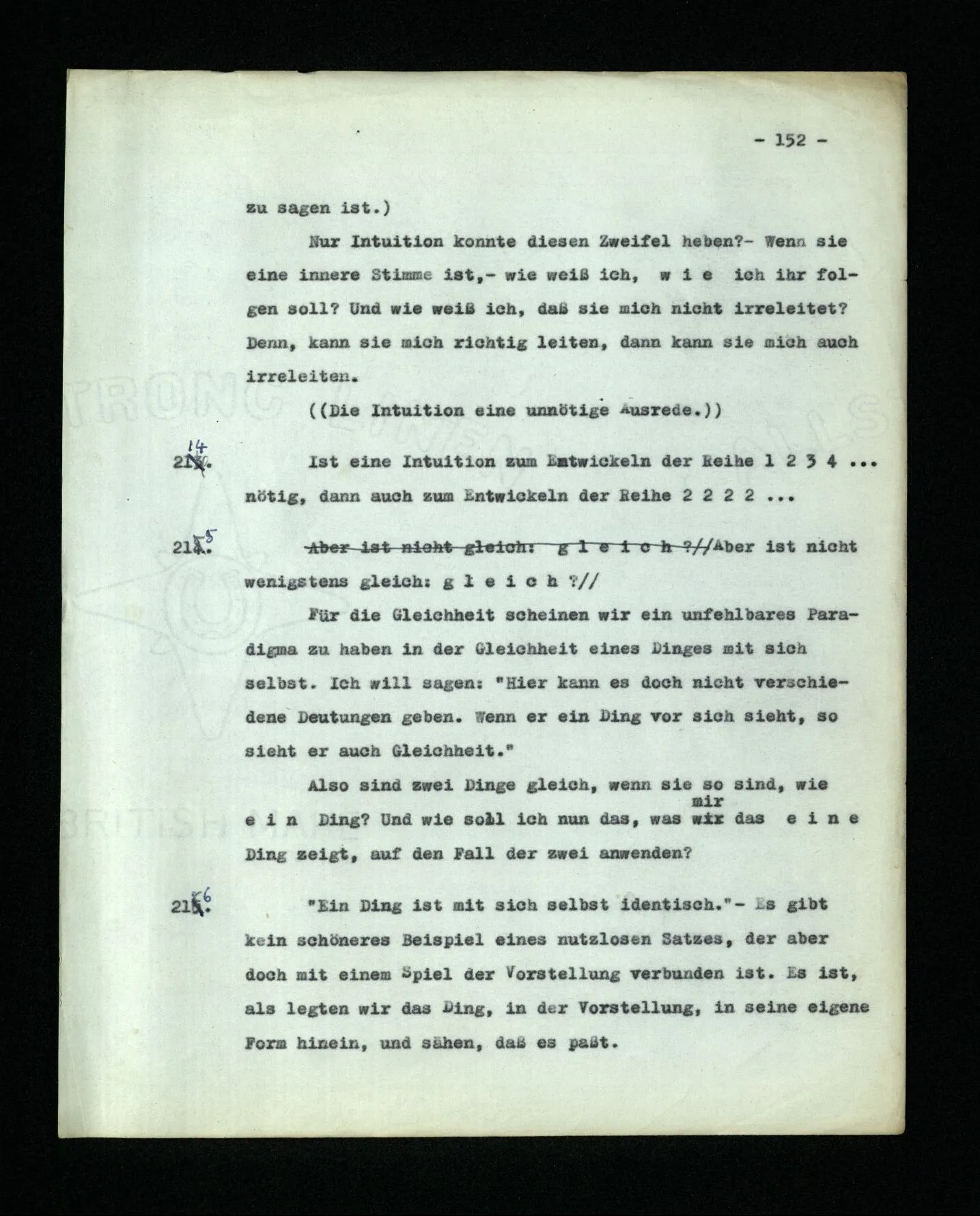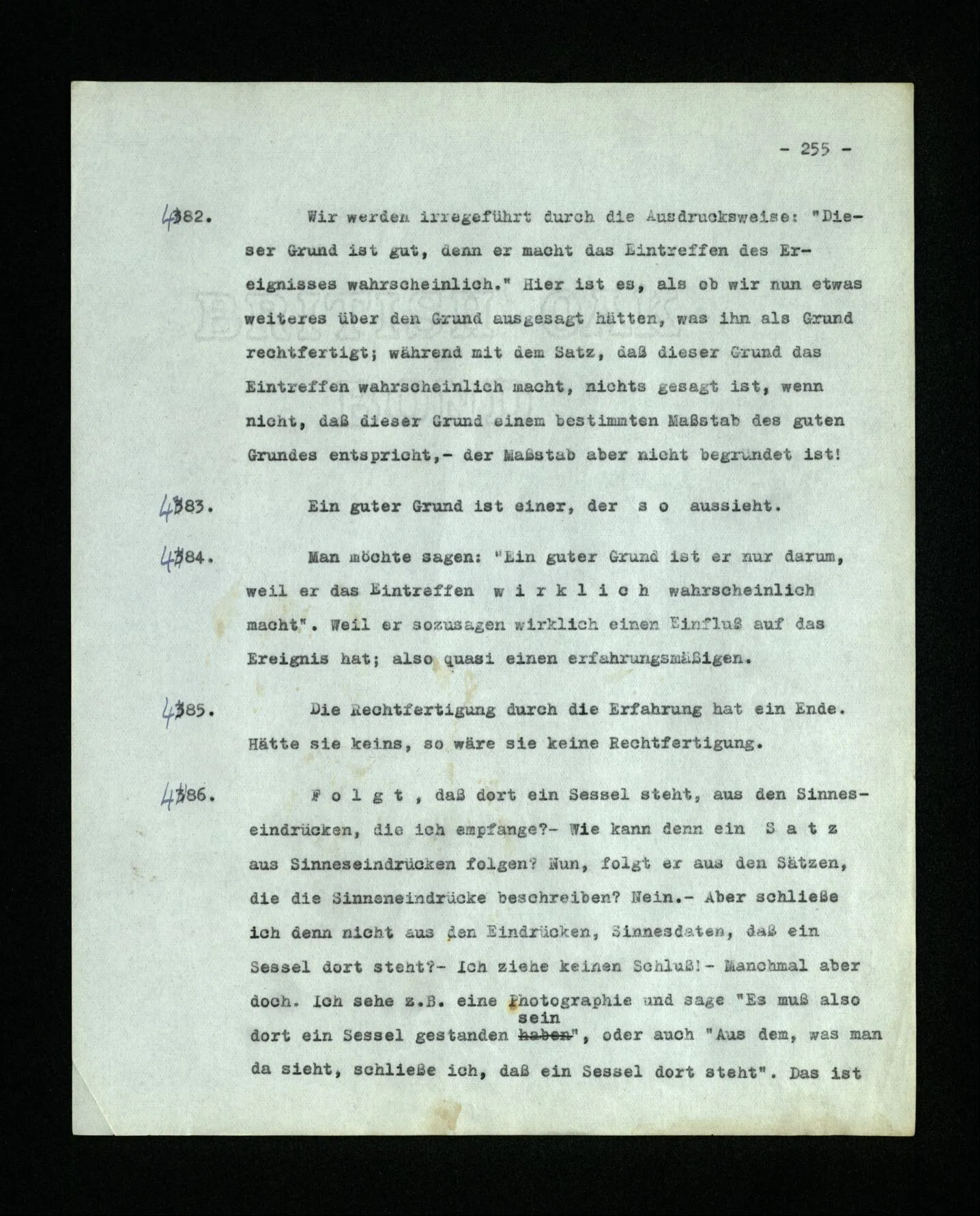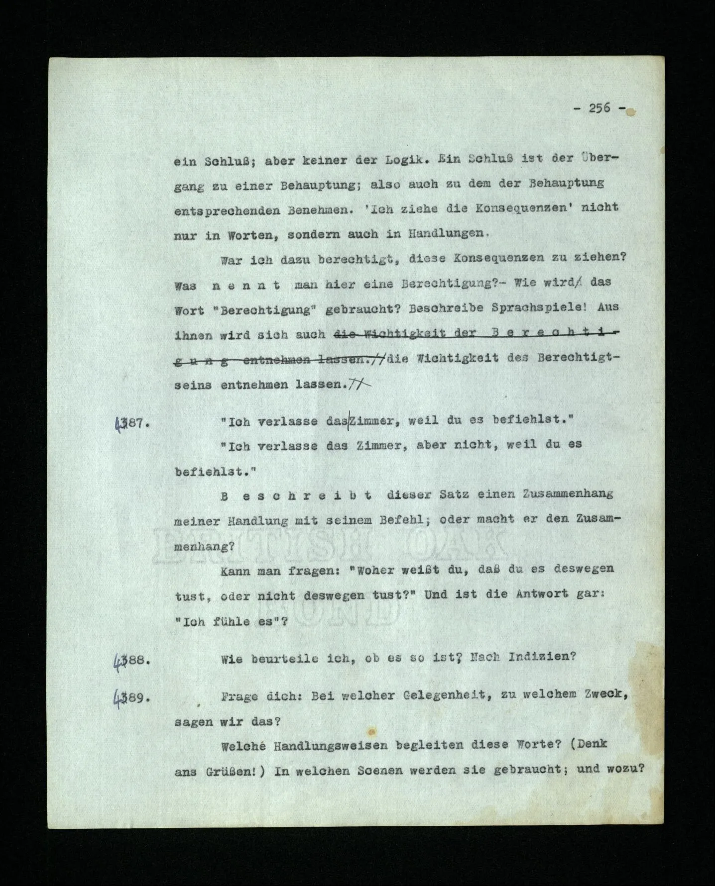 681. Man fragt natürlich auch nicht: “Bist du sicher, daß du ihn verflucht hast, daß die Verbindung mit ihm hergestellt war?” So ist also wohl diese Verbindung sehr leicht herzustellen, daß man ihrer so sicher sein kann?! Wissen kann, daß sie nicht daneben geht. – Nun, kann es mir passieren, daß ich an den Einen schreiben will und tatsächlich an den Andern schreibe? und wie könnte das geschehen?