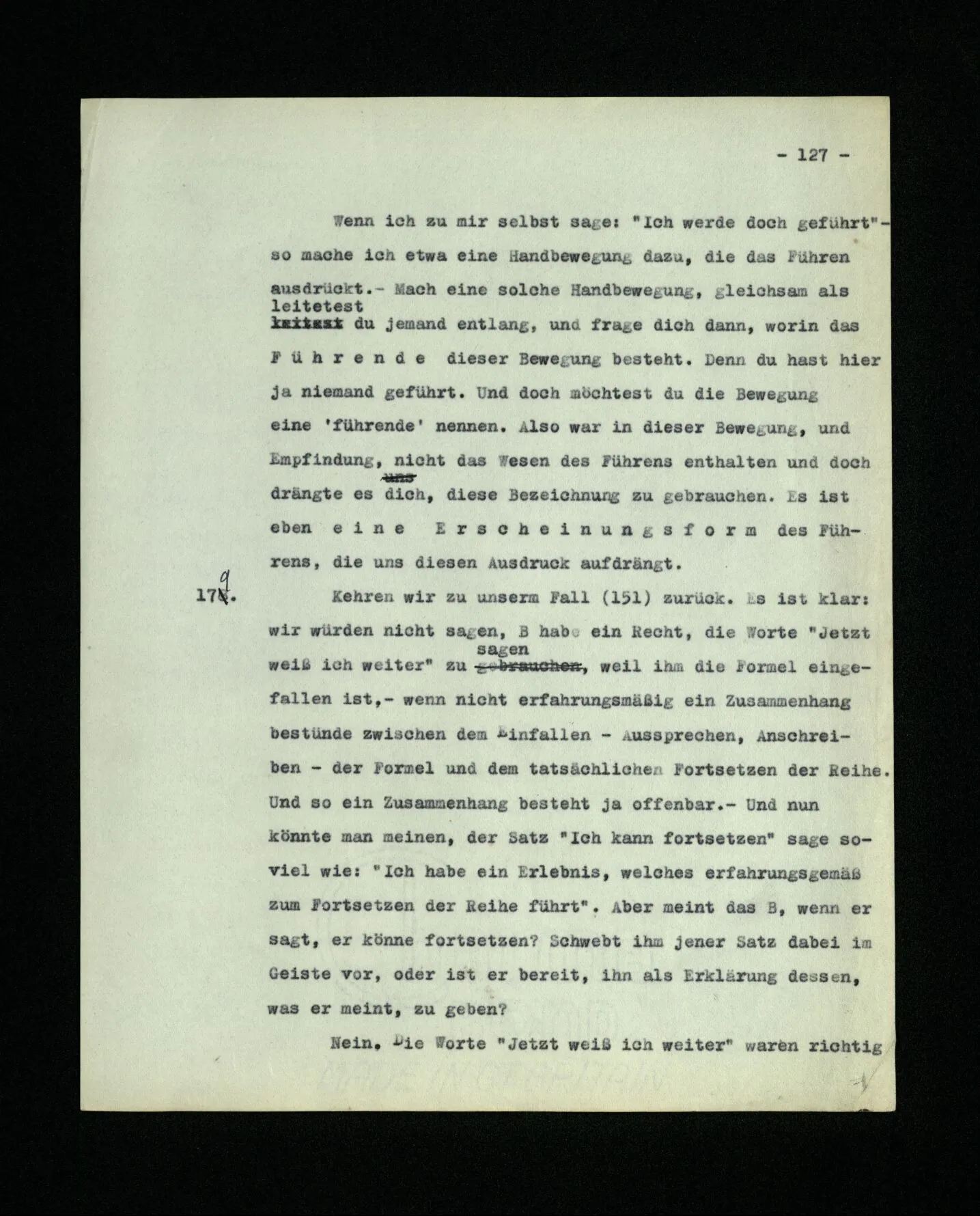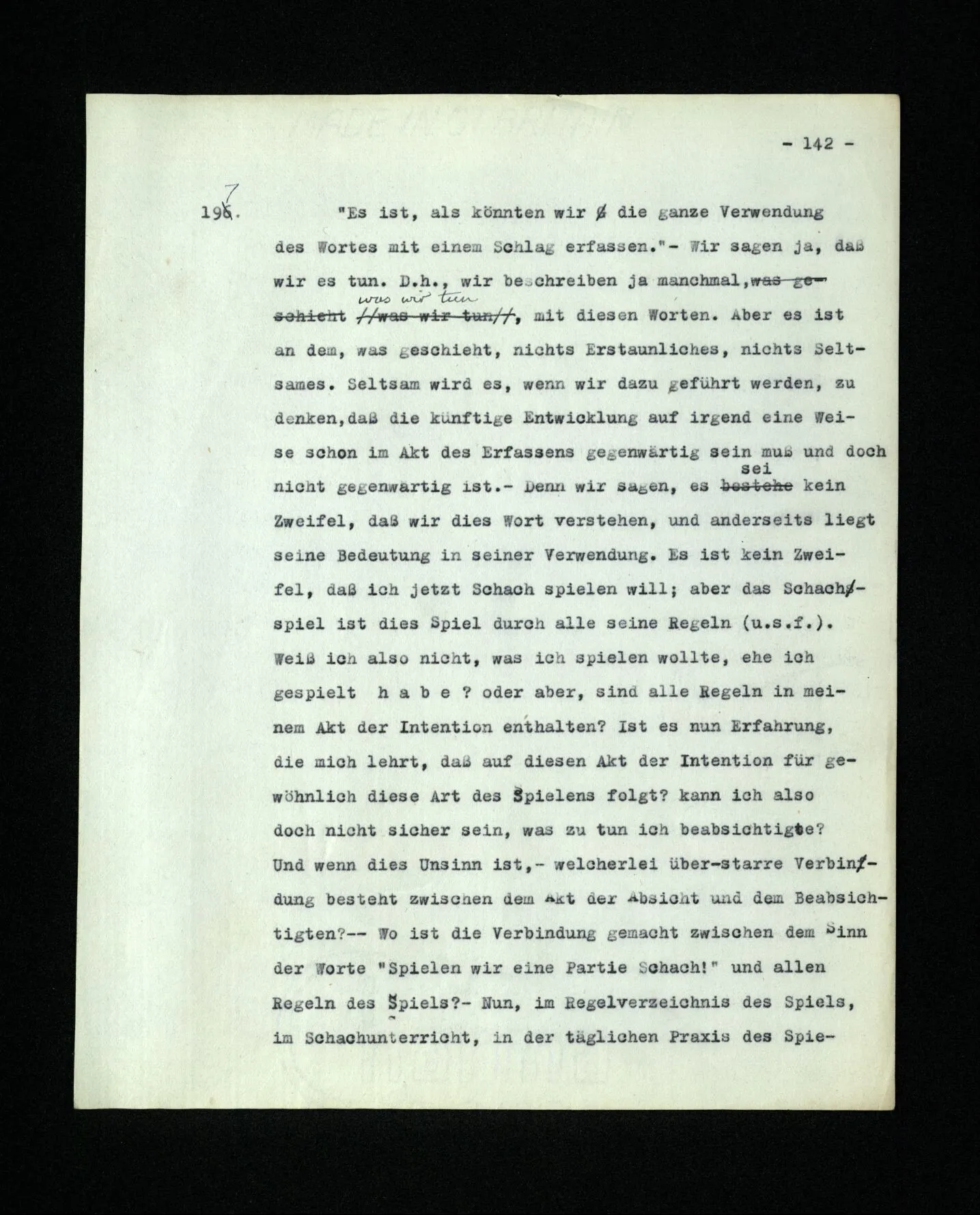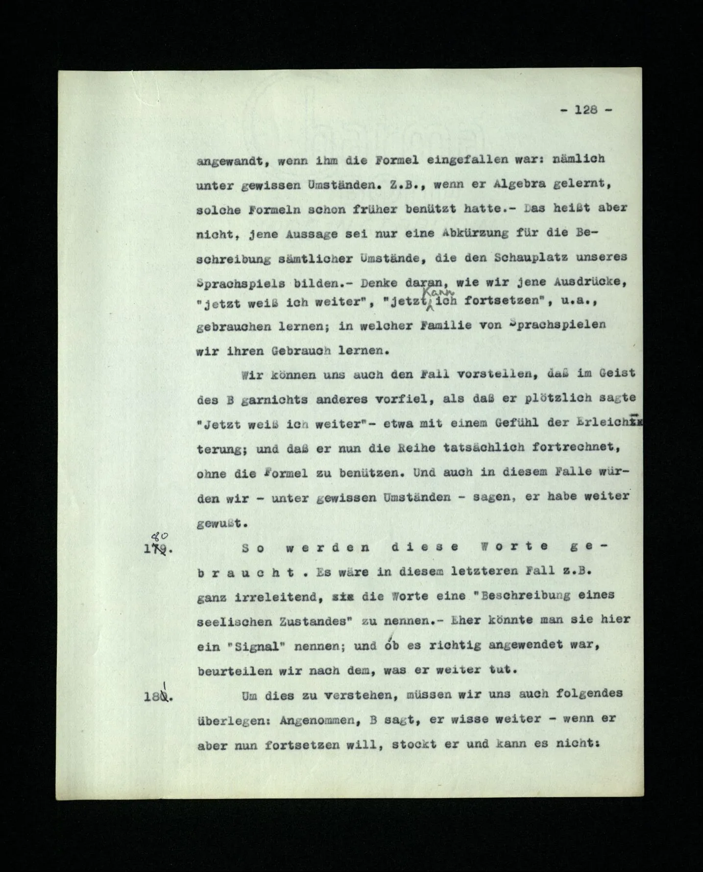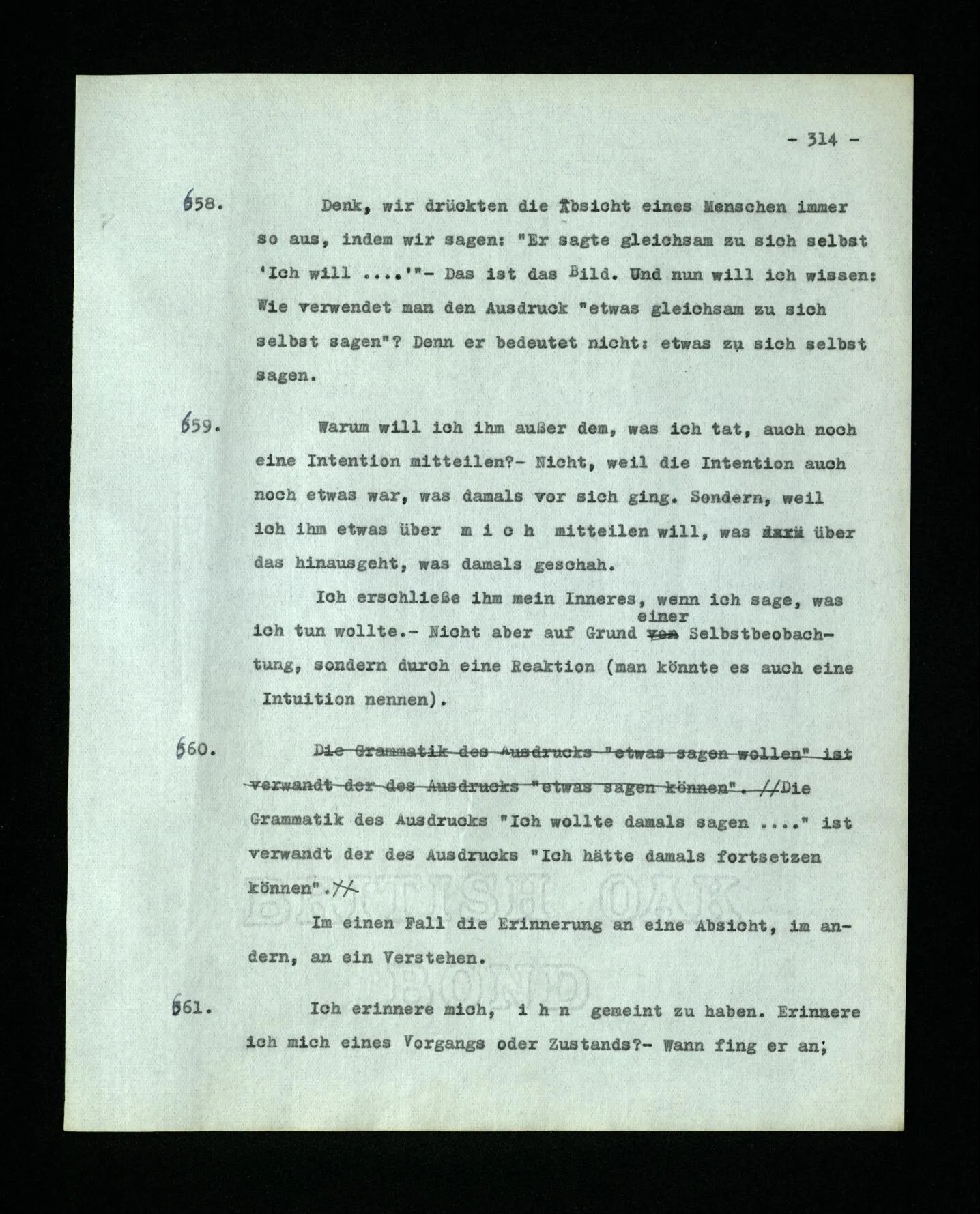 660. Die Grammatik des Ausdrucks “Ich wollte damals sagen …” ist verwandt der des Ausdrucks “Ich hätte damals fortsetzen können”. Im einen Fall die Erinnerung an eine Absicht, im andern, an ein Verstehen.