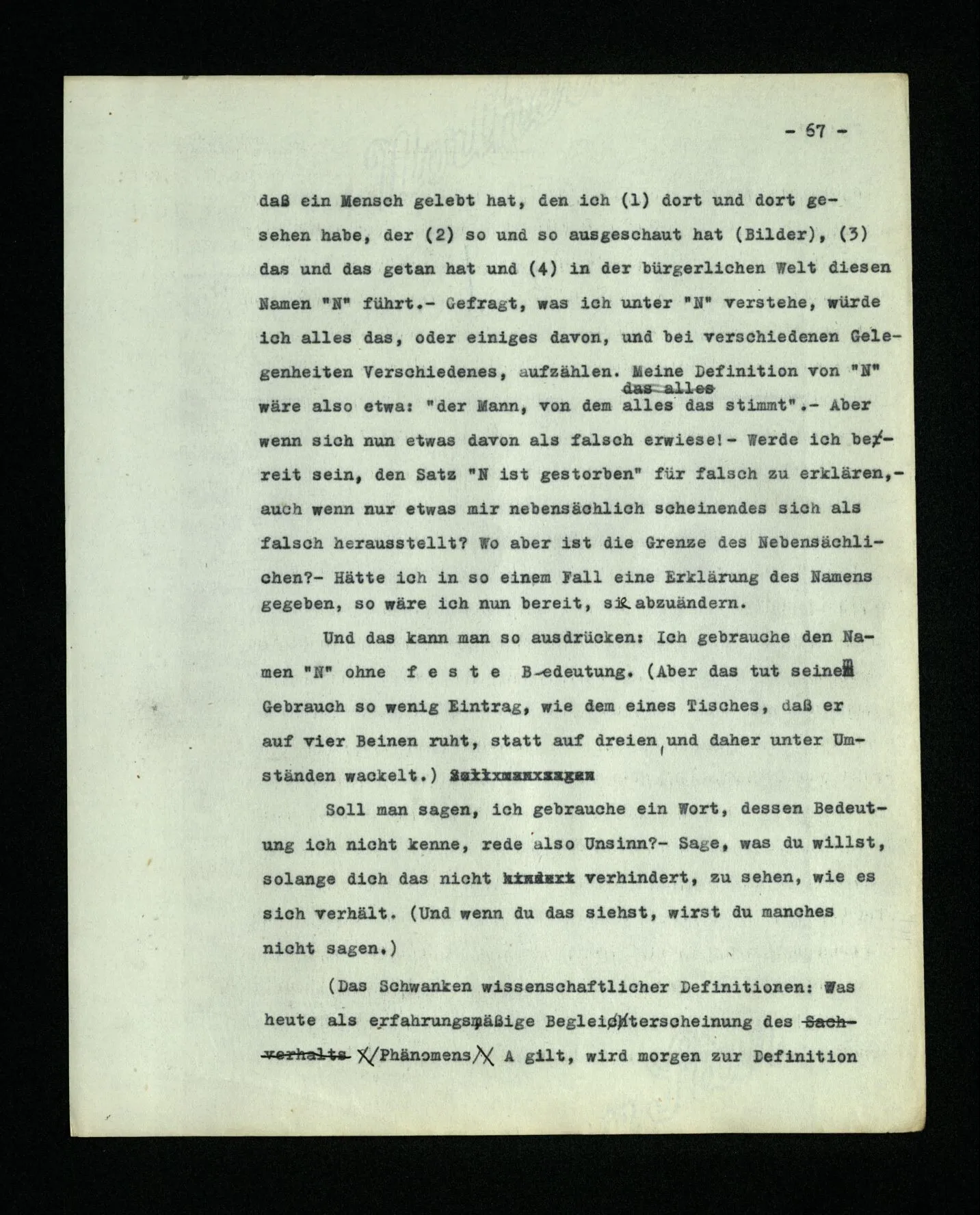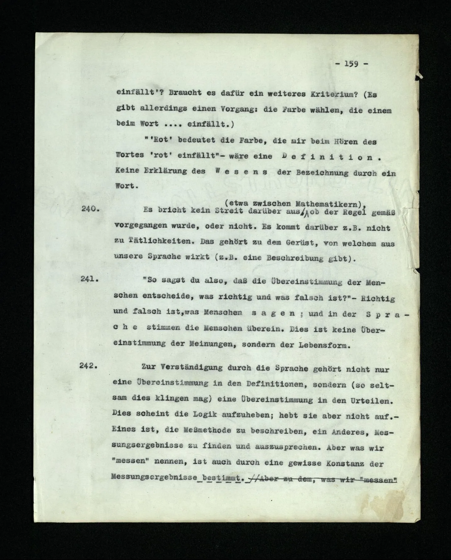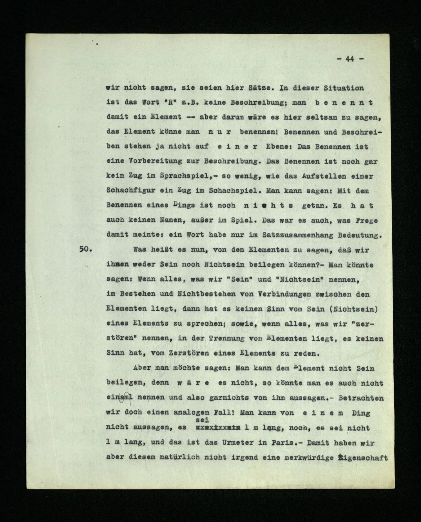 13 Wenn wir sagen: “jedes Wort der Sprache bezeichnet etwas”, so ist damit vorerst noch gar nichts gesagt; es sei denn, daß wir genau erklärten, welche Unterscheidung wir zu machen wünschen. (Es könnte ja sein, daß wir die Wörter der Sprache (8) von Wörtern ‘ohne Bedeutung’ unterscheiden wollten, wie sie etwa in Gedichten Lewis Carroll’s vorkommen, oder von Worten wie “juwiwallera” in einem Lied.)