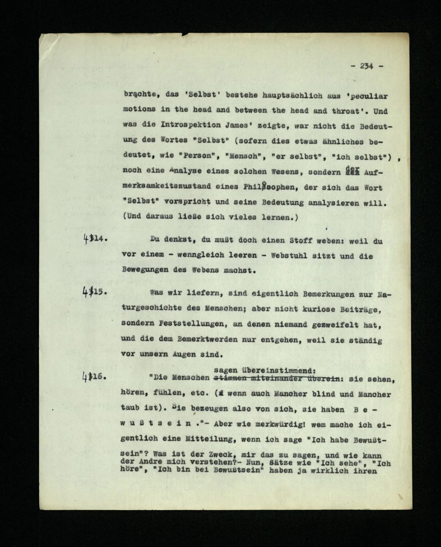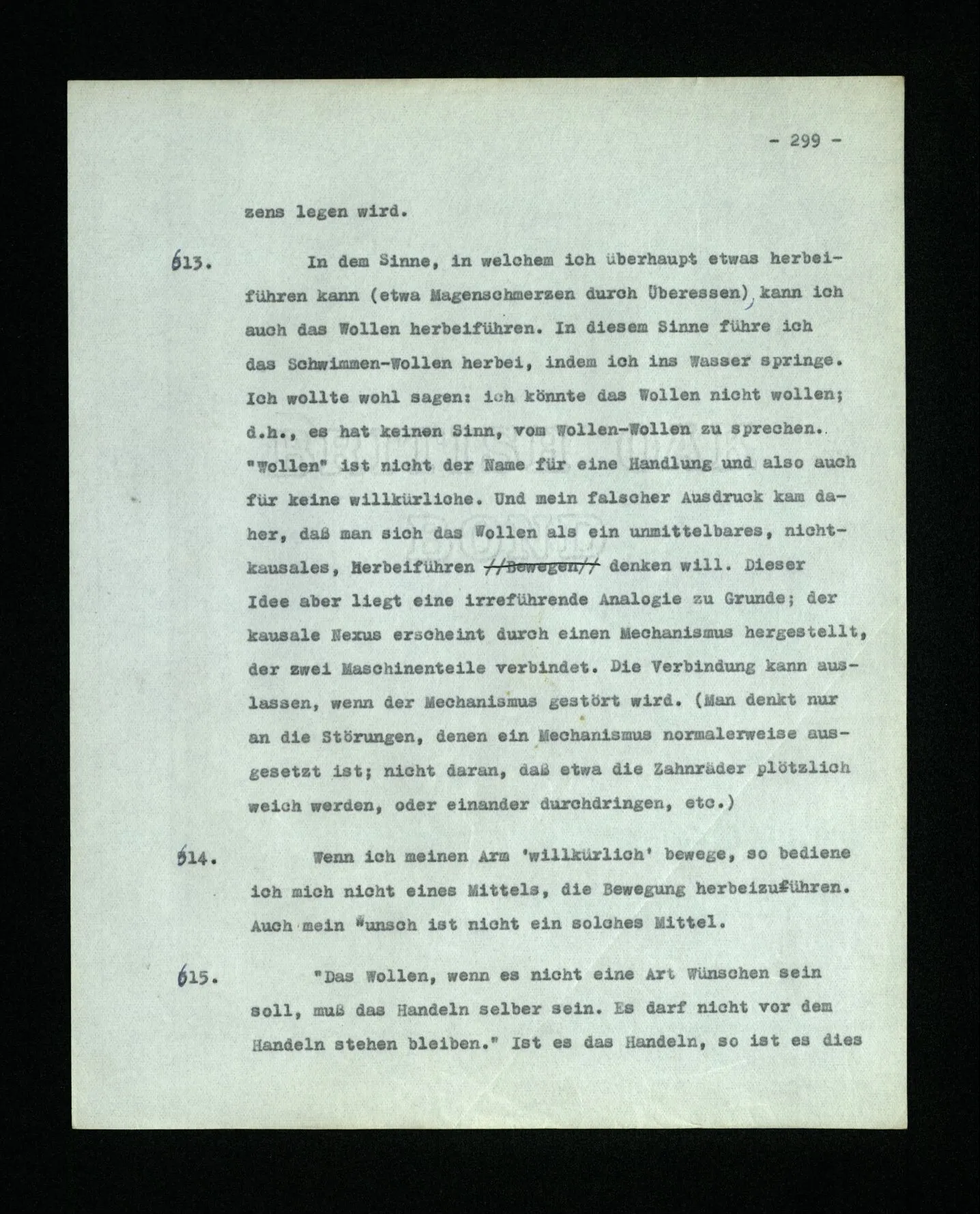 690. Wie, wenn ich einmal eine scheinbar unschuldige Bemerkung mache und sie mit einem verstohlenen Seitenblick auf jemand begleite; ein andermal, vor mich niedersehend, offen über einen Anwesenden rede, indem ich seinen Namen nenne,– denke ich wirklich eigens an ihn, wenn ich seinen Namen gebrauche?