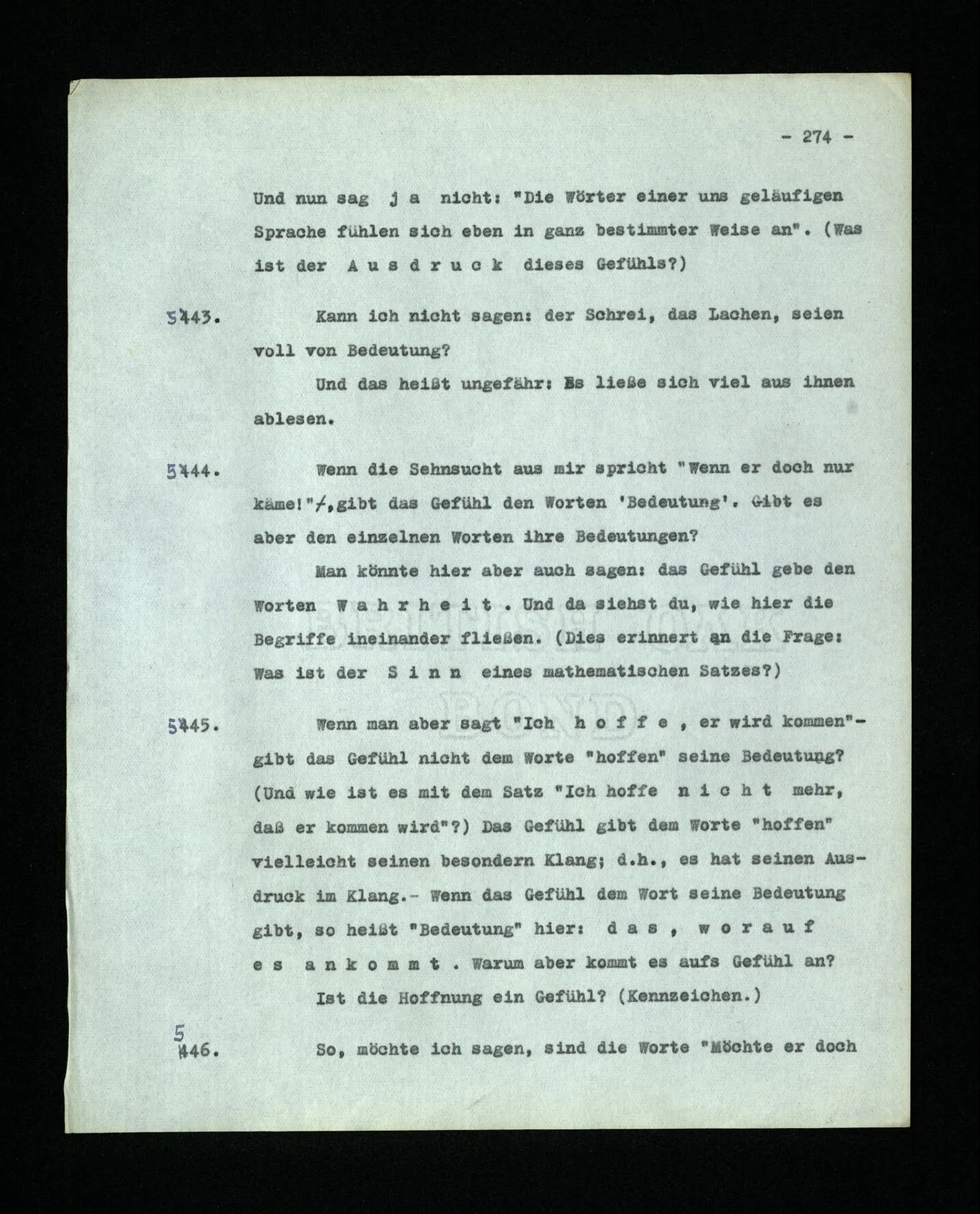 676. “Ich meinte mit dem Wort dies” ist eine Mitteilung, die anders verwendet wird, als die einer Affektion der Seele.