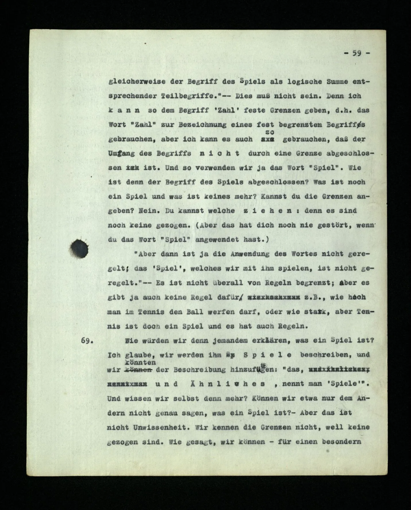 668. Aber kann man nicht auch so lügen, indem man sagt “Es wird bald aufhören” und den Schmerz meint,– aber auf die Frage “Was hast du gemeint?” zur Antwort gibt: “Den Lärm im Nebenzimmer”? In Fällen dieser Art sagt man etwa: “Ich wollte antworten …, habe mir’s aber überlegt und geantwortet …”