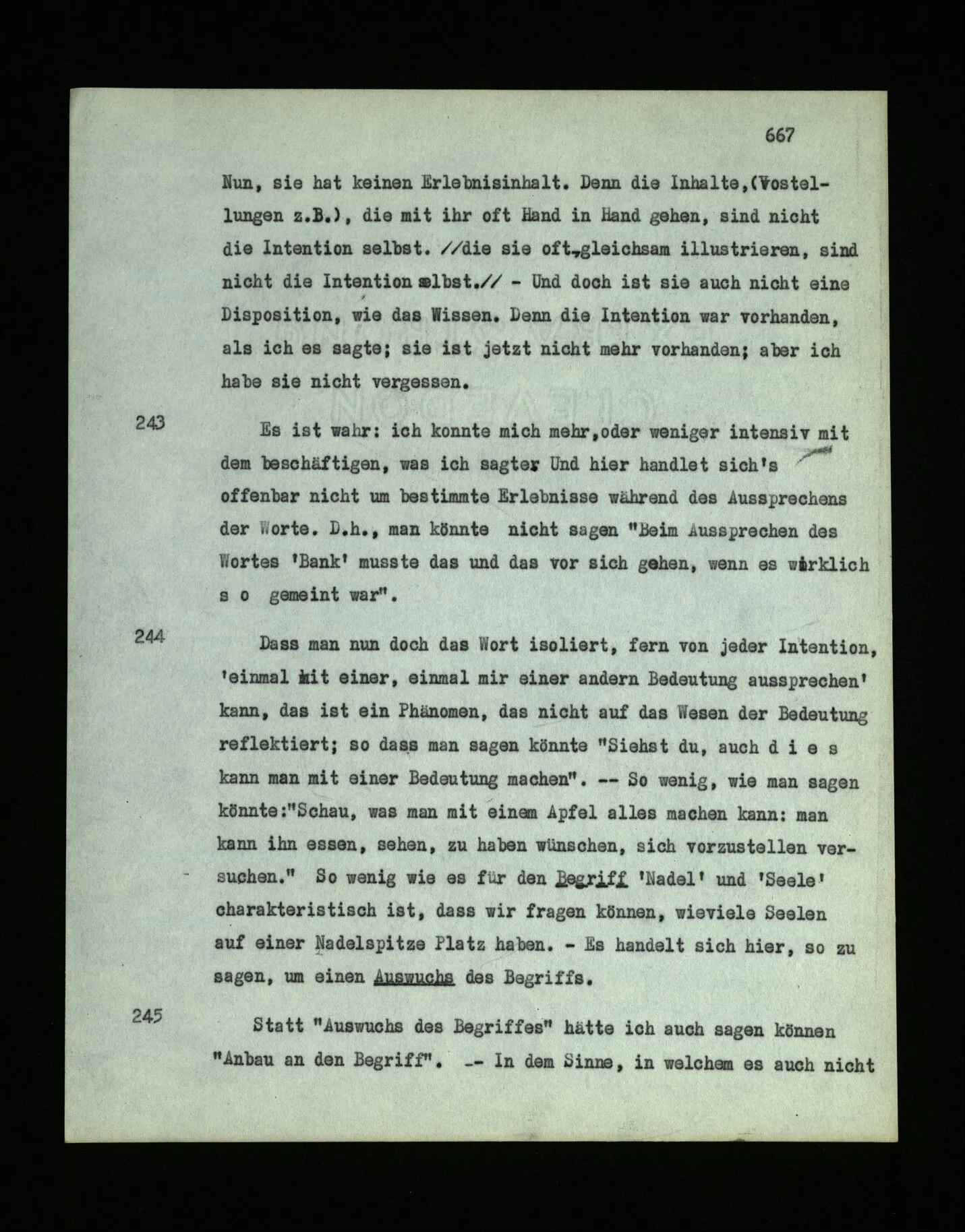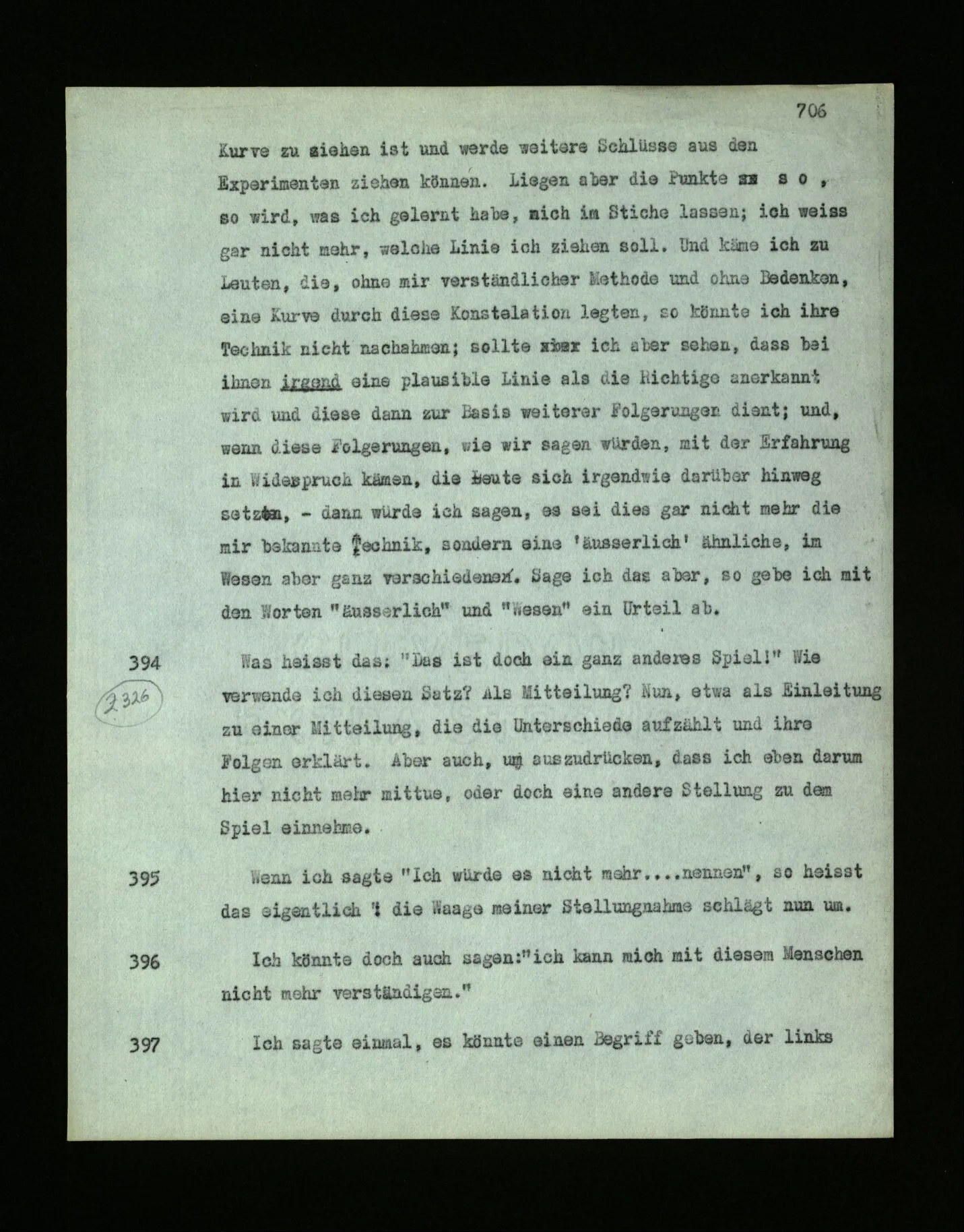 038 Denn nicht das ist die Frage: was ich mache, wenn … (dies könnte nur eine psychologische Frage sein) – sondern, welche Bedeutung die Äußerung hat, was sich aus ihr entnehmen läßt, welche Folgen sie hat.