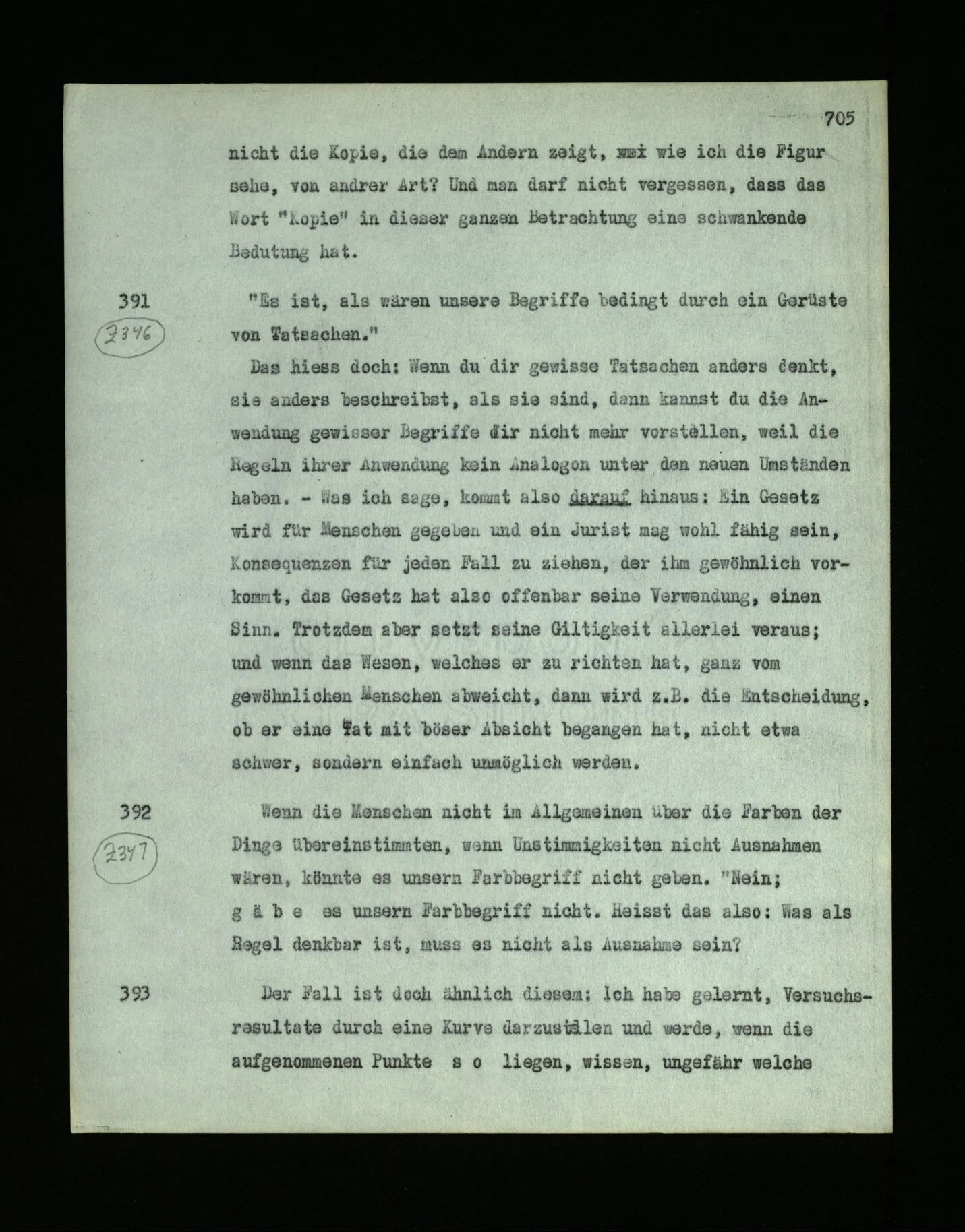 715 Man könnte die Frage stellen: welcher Art muß das Gesetz der zugelassenen Evidenz sein, damit diese Auffassung uns nahe liegt?