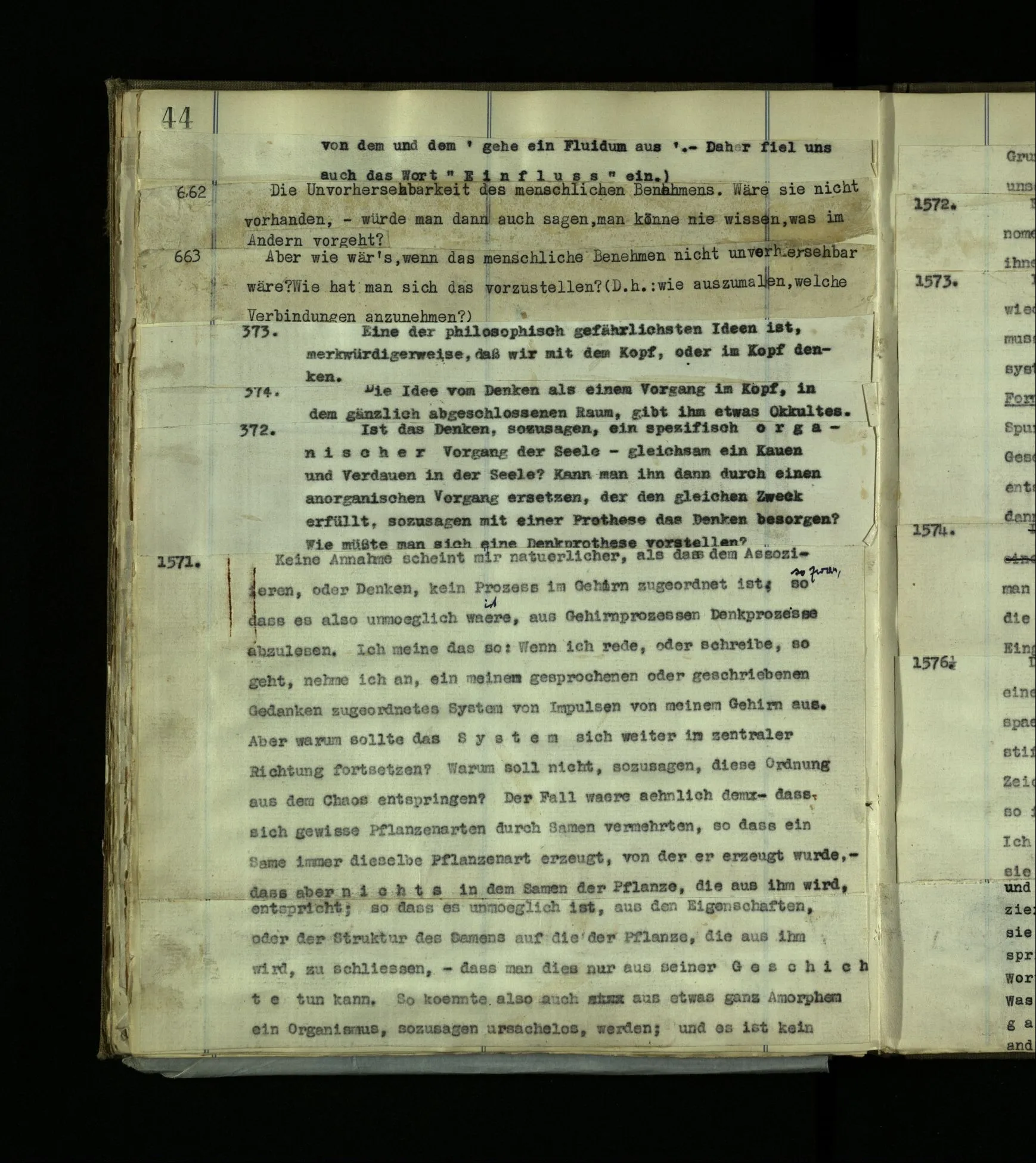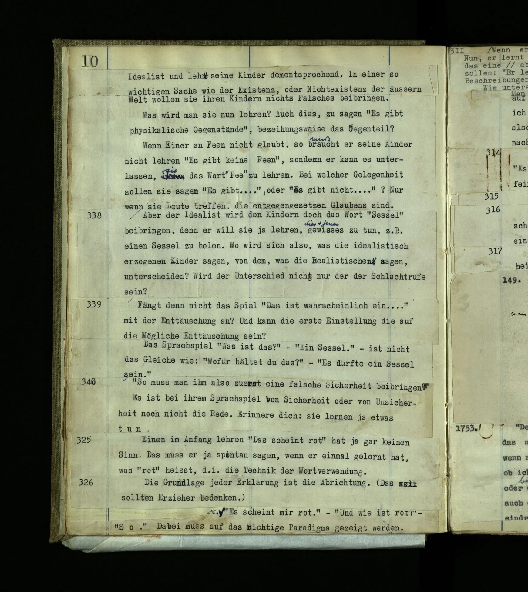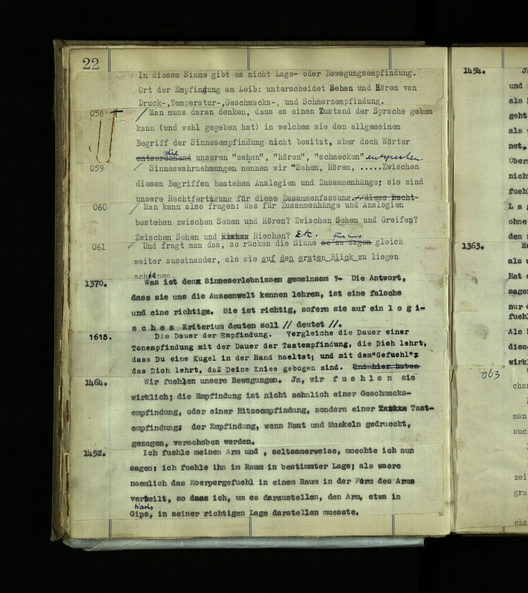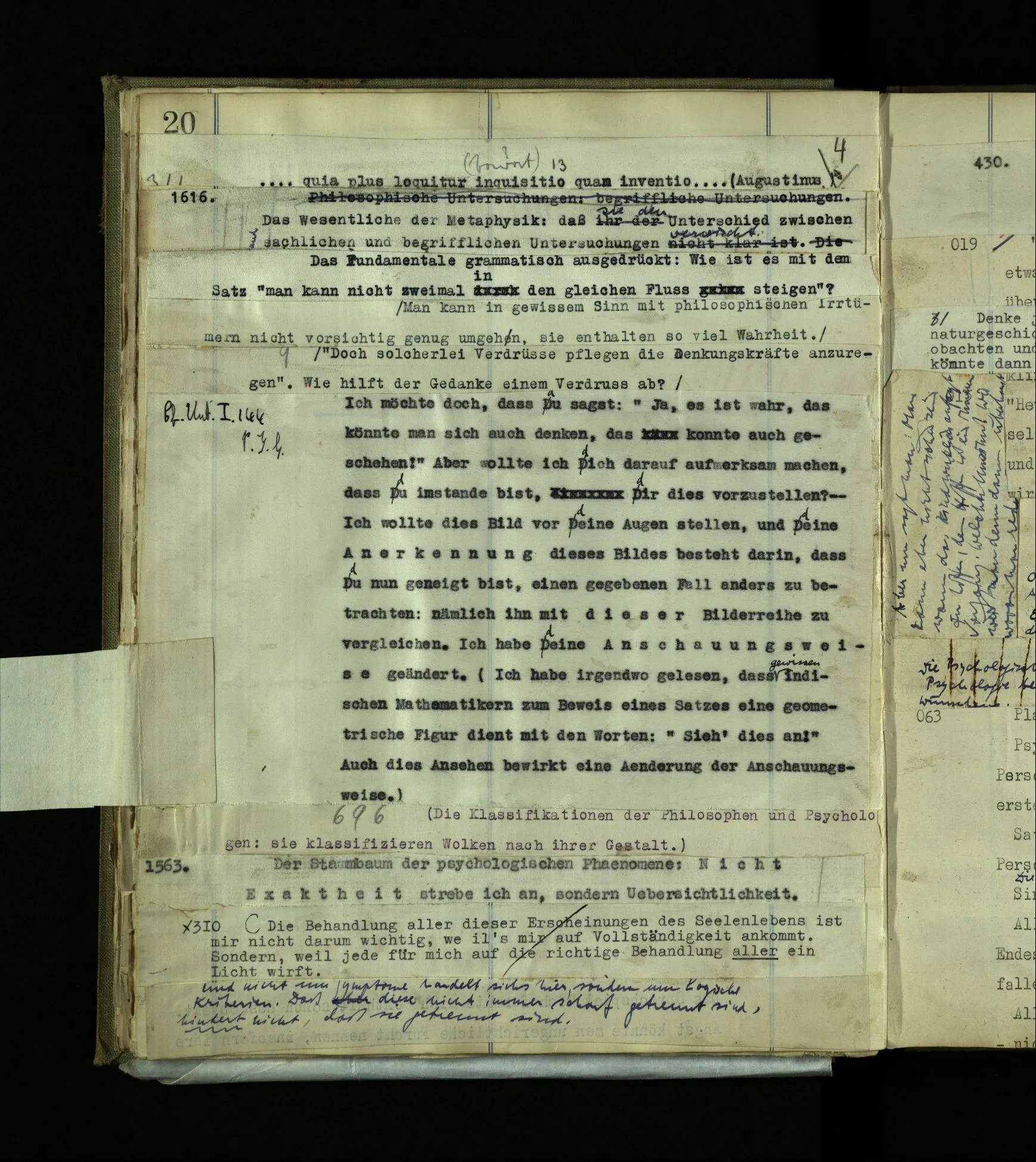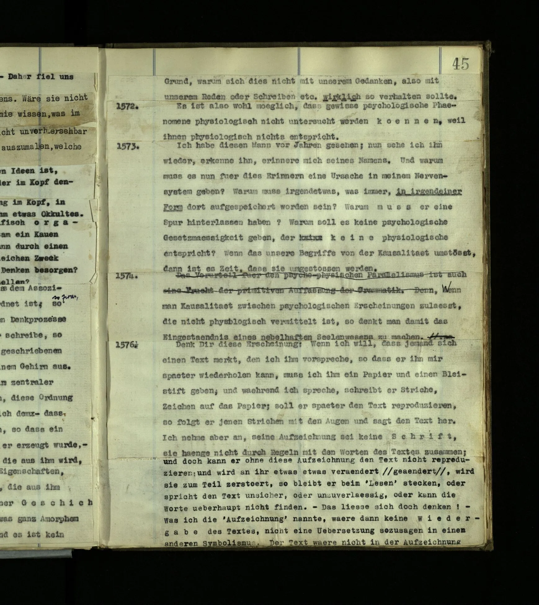 568. “Gott kannst du nicht mit einem Anderen reden hören, sondern nur, wenn du der Angeredete bist.“ Das ist eine grammatische Bemerkung.