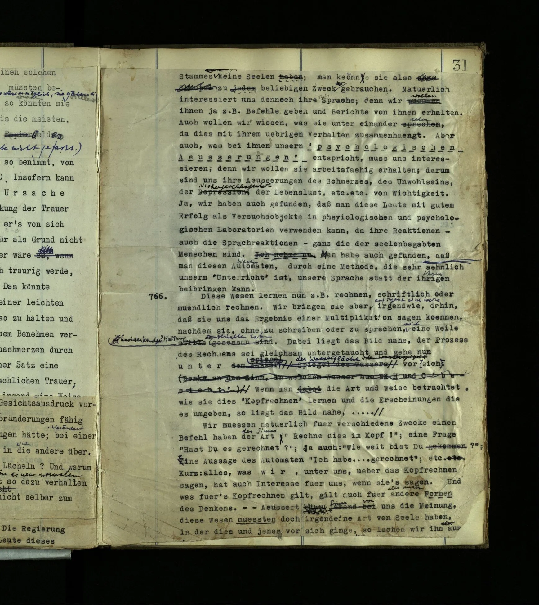 699 ‘Diese Menschen hätten nichts Menschenähnliches.’ Warum? – Wir könnten uns unmöglich mit ihnen verständigen. Nicht einmal so, wie wir’s mit einem Hund können. Wir könnten uns nicht in sie finden. Und doch könnte es ja solche im übrigen menschenähnliche Wesen geben.