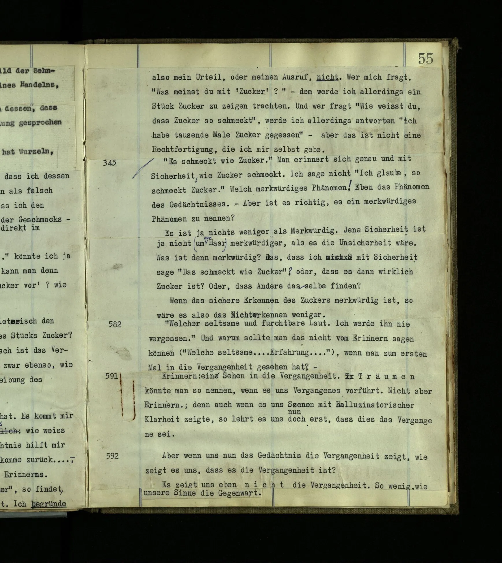 347 Verwirrung der Geschmäcke: Ich sage “Das ist süß”, der Andere “Das ist sauer”, u.s.f. Einer kommt daher und sagt: “Ihr habt Alle keine Ahnung, wovon ihr sprecht. Ihr wißt gar nicht mehr, was ihr einmal einen Geschmack genannt habt.” Was wäre das Zeichen dafür, daß wir’s noch wissen? [Hängt mit einer Frage über eine Verwirrung im Rechnen zusammen.]