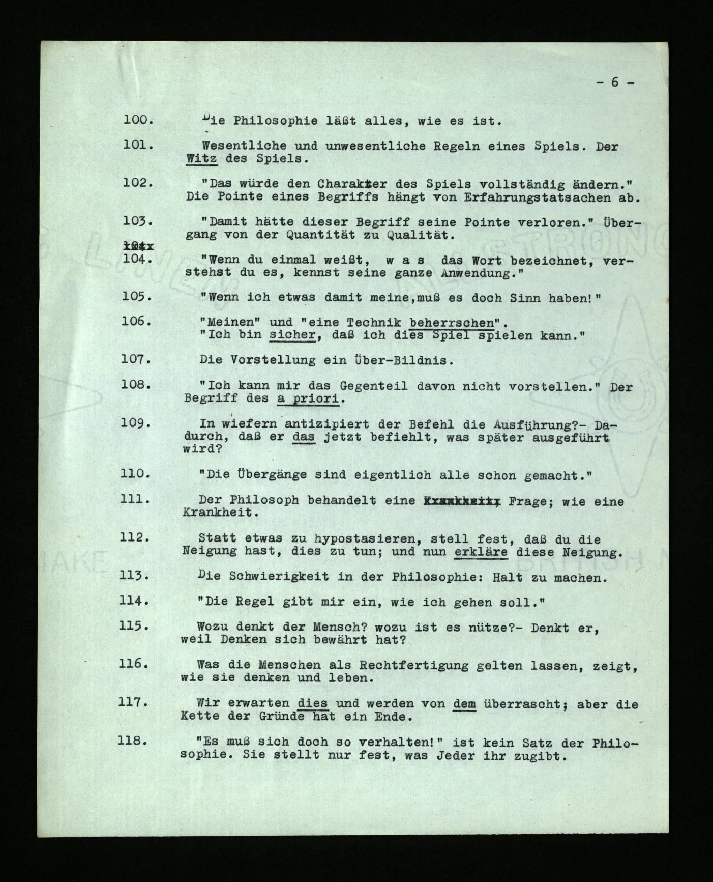 112. Statt etwas zu hypostasieren, stell fest, daß du die Neigung hast, dies zu tun; und nun erkläre diese Neigung.