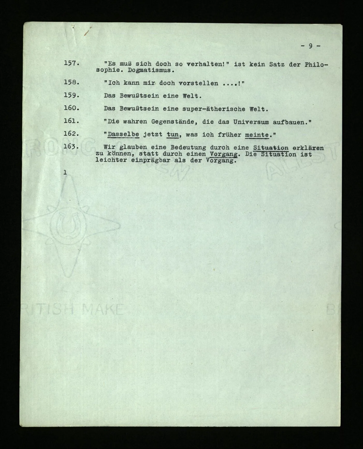157. “Es muß sich doch so verhalten!” ist kein Satz der Philosophie. Dogmatismus.
